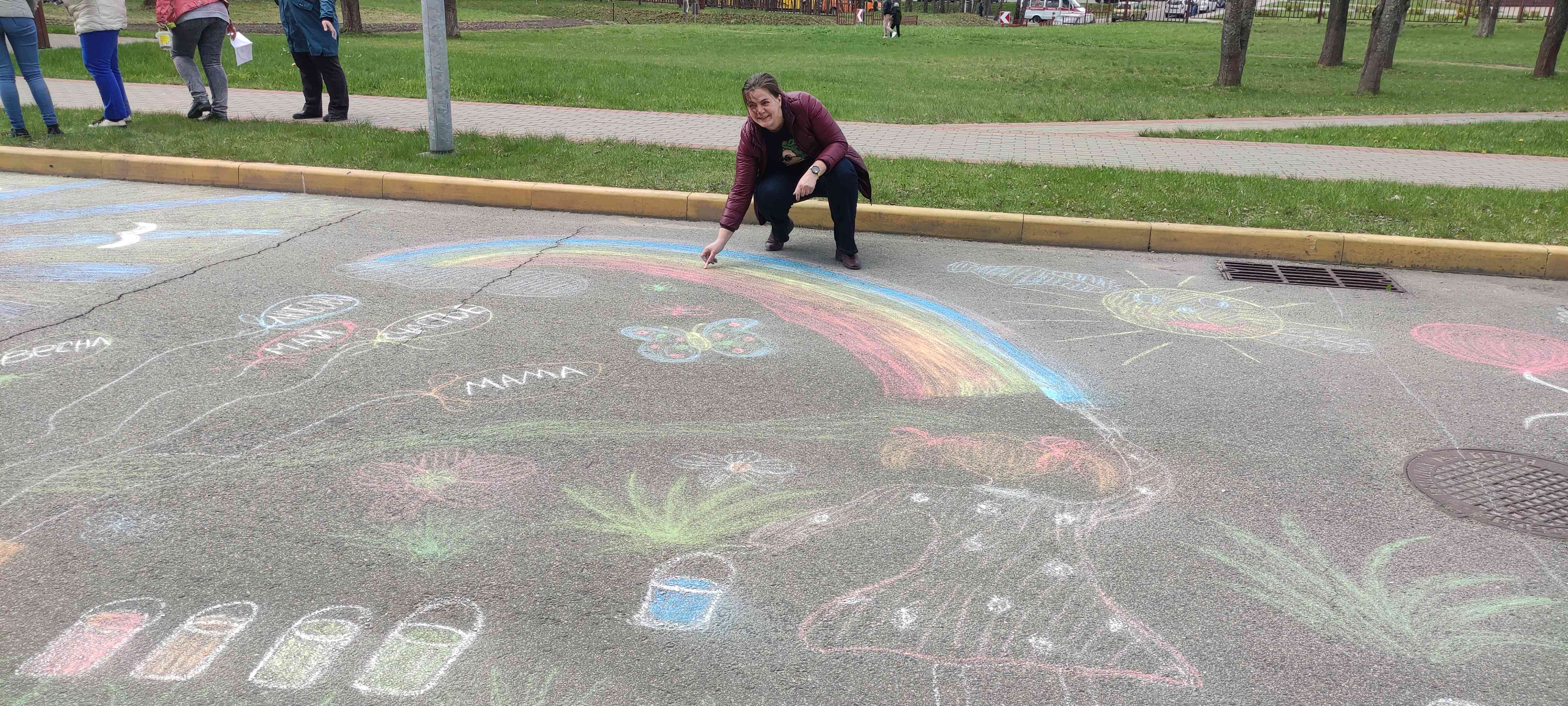 Ярко и красочно члены профсоюза УЗ «Минской областной клинической больницы» встречают международный праздник — День труда 1 мая, организовав конкурс рисунков на асфальте «Наш цветущий Первомай!».