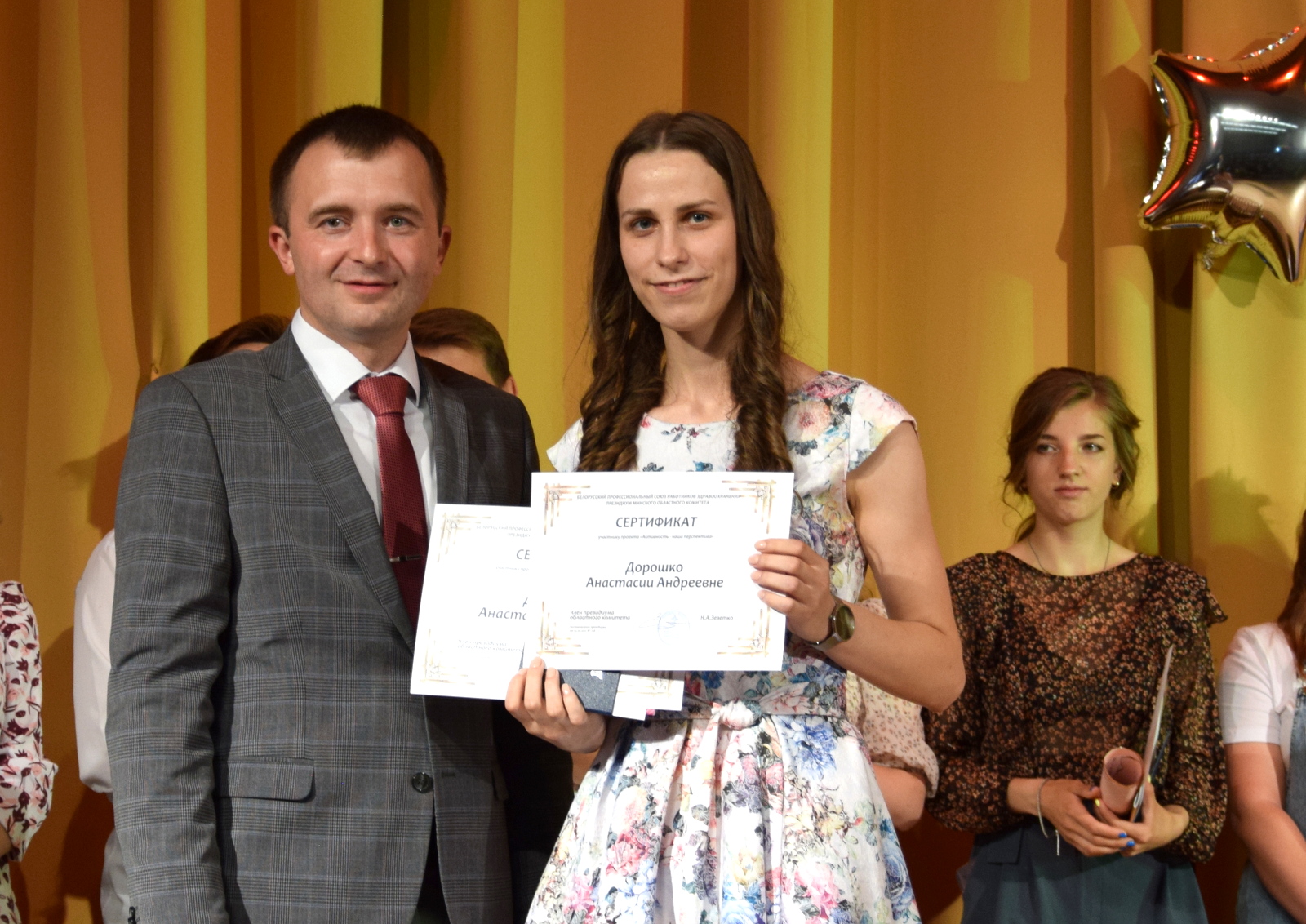 Пять выпускников стали участниками целевого профсоюзного молодежного проекта «Активность – наша перспектива»: Коротчикова Анна, Маркевич Евгений, Грибовская Александра, Дорошко Анастасия, Каминская Мария, которым были вручены соответствующие дипломы и ценные подарки от Минского областного комитета.