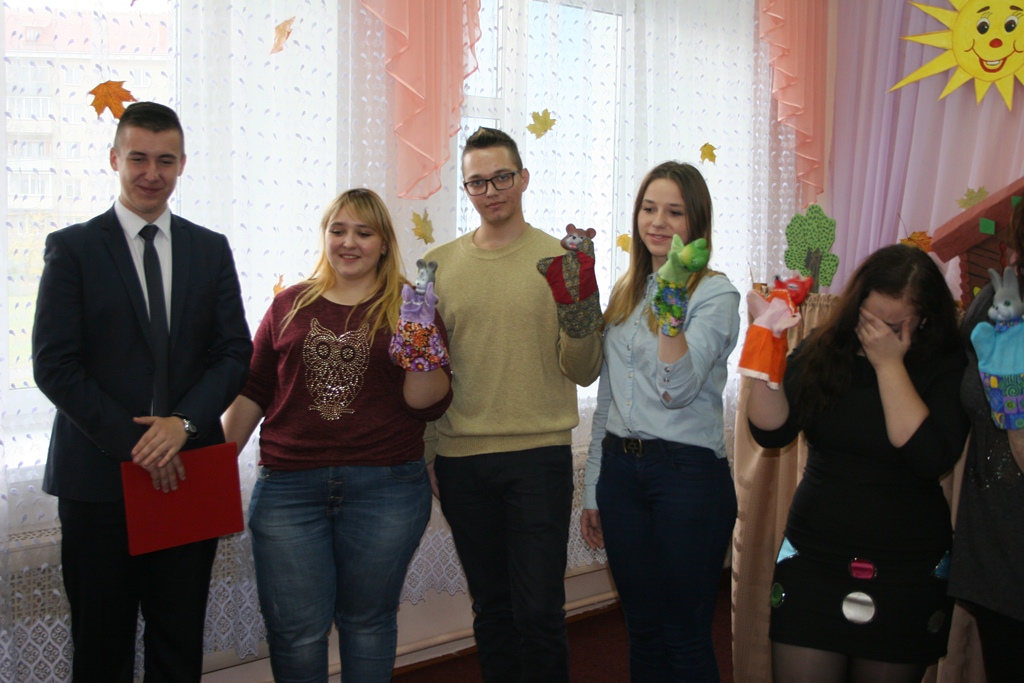 Членам Молодежного Совета и учащимся колледжа была предоставлена возможность пообщаться с малышами. В свою очередь, силами первокурсников был подготовлен кукольный спектакль по мотивам сказки «Теремок» и в музыкальном зале состоялось представление, а продолжением акции стала творческая работа по раскрашиванию веранды, расположенной на детской площадке. Эта работа была выполнена с учетом пожелания администрации. К слову, сюжет рисунка был подобран также на тему одной из сказок, которая хорошо знакома воспитанникам.