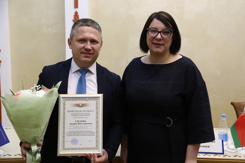 В ходе работы Пленума за многолетний добросовестный труд, высокий профессионализм, активную работу по защите трудовых, социально-экономических прав и интересов работников почетной грамотой Молодечненского районного исполнительного комитета награжден председатель первичной профсоюзной организации Молодечненской  ЦРБ  Андрей Средов.