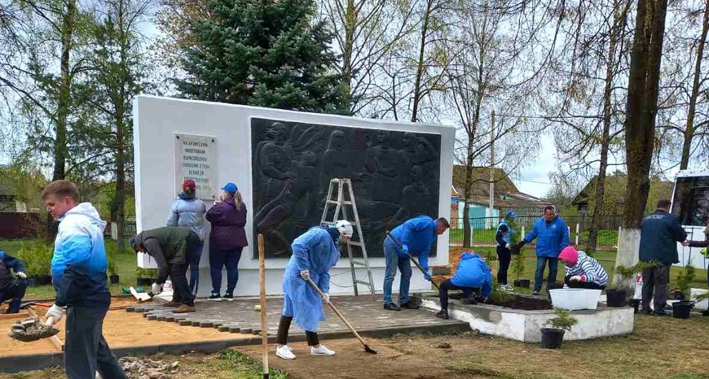 Молодые медики реставрировали основание мемориала медицинским работникам, погибшим в годы Великой Отечественной войны, расположенном на территории больницы сестринского ухода в деревне Ганцевичи Борисовского района Минской области и навели порядок на прилегающей территории.