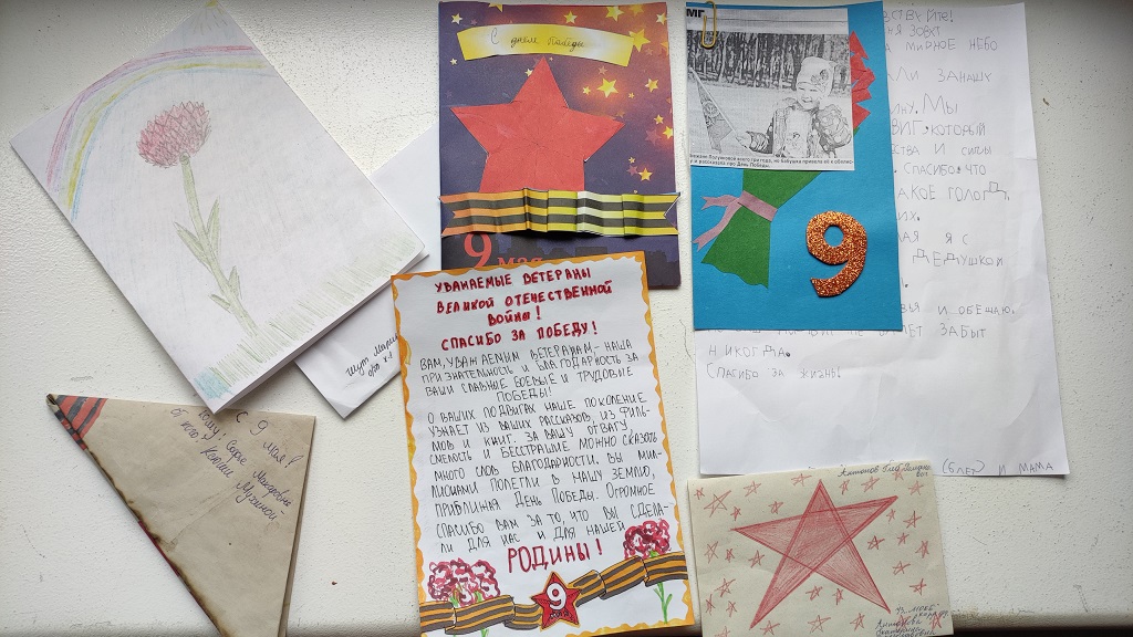 Письма ветерану дети оформили в виде открыток, где простыми словами написали, как гордятся тем, что живут рядом с героями и каждый поблагодарил за мирную жизнь.