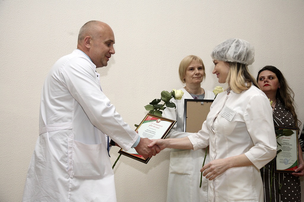 Председатель профсоюзного комитета больницы Сергей Юркевич поздравил медицинских сестер с профессиональным праздником, поблагодарил за плодотворный труд, пожелал, чтобы каждый день приносил удачу, исполнялись самые смелые планы, счастье и добро всегда сопровождали на жизненном пути. За добросовестное и активное участие в деятельности профсоюзной организации вручил Грамоты медсестре по функциональной диагностике отделения функциональной диагностики Марте Дубицкой, акушерке родильного отделения патологии беременных родильного дома Елене Сечко, медсестре психиатрического отделения психоневрологического диспансера Оксане Гаврилович.