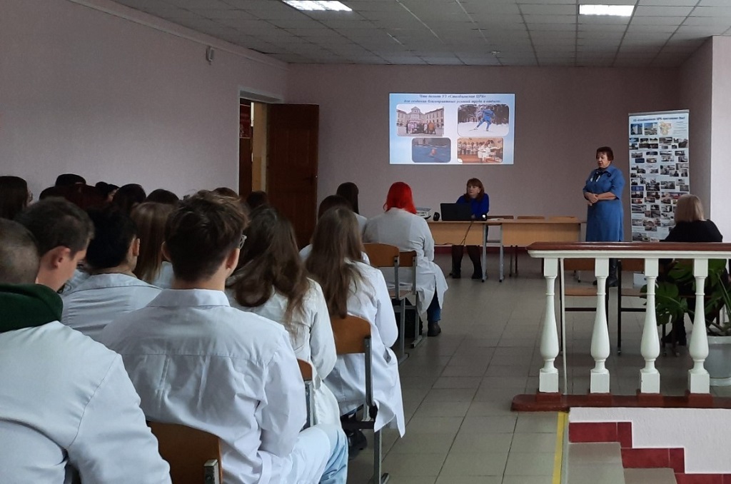 – Мы с ребятами обсудили права и гарантии молодых специалистов и, прежде всего, внесли ясность в понимание того, кто же является молодым специалистом. Стоит подчеркнуть, что важным бонусом для всех наших выпускников является стопроцентное обеспечение первым рабочим местом. Этим преимуществом мы предлагаем воспользоваться и тем, кто обучается на платной основе. Приятно порадовала активность ребят во время встречи – интересные диалоги, заинтересованность вопросами будущей профессии и, конечно, доброжелательная атмосфера, –  отметила заместитель директора Елена Козловская.