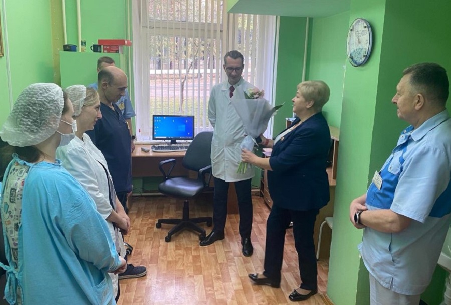 Профком Минской областной клинической больницы поздравил сотрудников отделения гемодиализа с экстракорпоральной детоксикации с юбилеем подразделения.