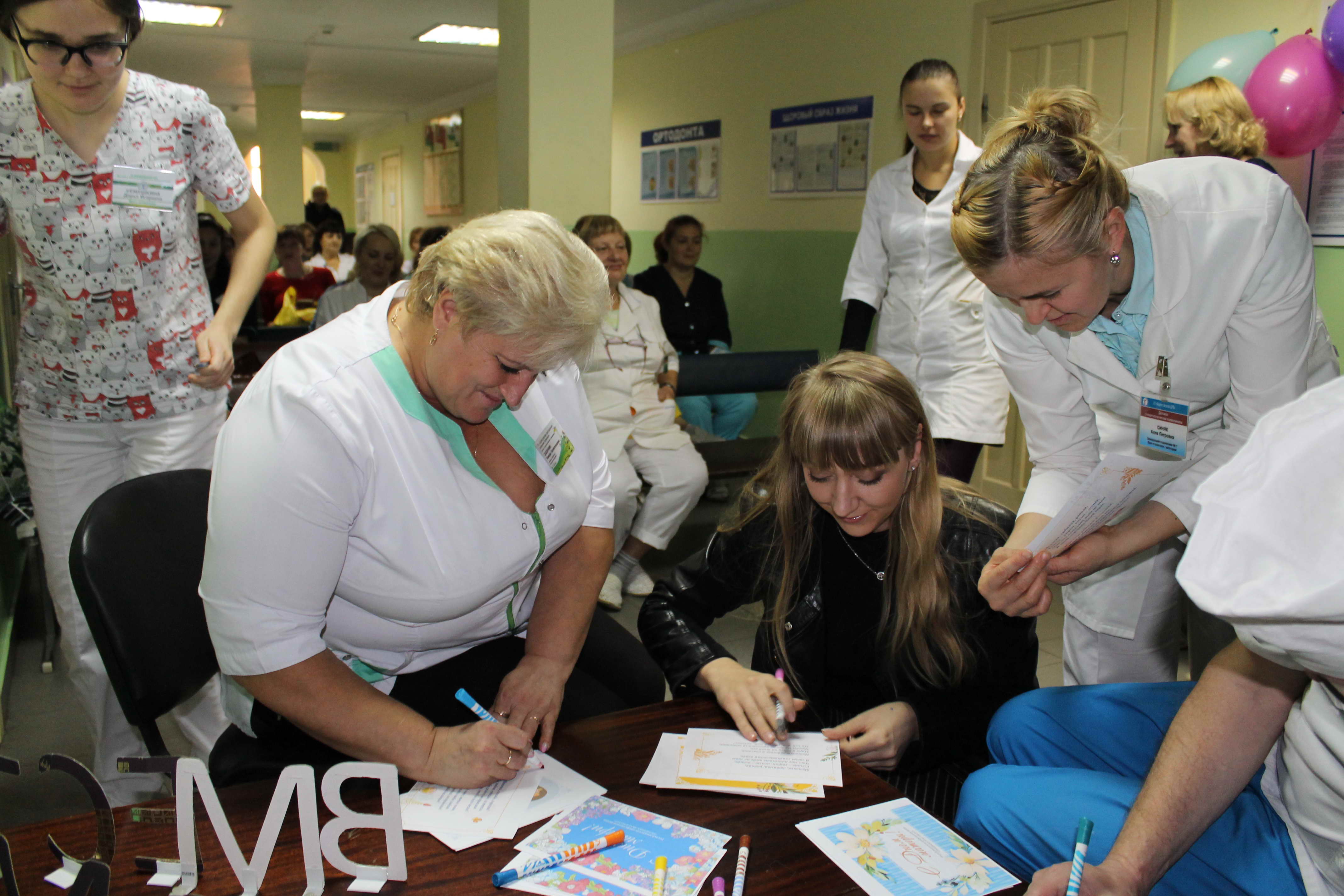 С 8 по 12 октября в структурных подразделениях объединенной профсоюзной организации учреждения здравоохранения «Борисовская центральная районная больница» можно было написать добрые пожелания на одной из 5 праздничных открыток и отослать их самому дорогому человеку, притом совершенно бесплатно. Для этого во всех поликлиниках и профкоме были организованы тематически оформленные «точки». Профсоюзные специалисты помогали оформить поздравление и при необходимости отправляли его по указанному адресу.