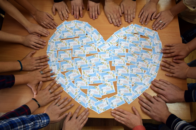 Учащиеся с удовольствием подписывали подготовленные профкомом открытки, добавляя к уже готовому стихотворному тексту слова любви и признательности своим мамам, а если не хватало слов – рисунки в виде сердечек и цветочков говорили все без слов.