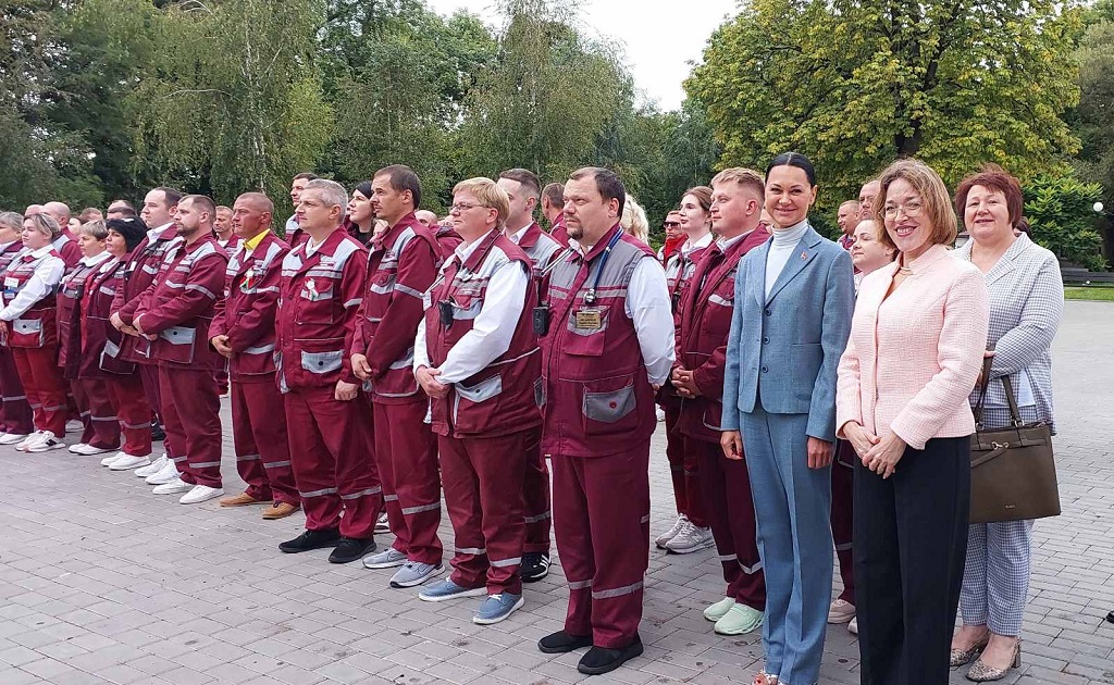 В торжественном открытии принимают участие лидер отраслевого профсоюза Минщины Ольга Катова, заместитель начальника главного управления по здравоохранения Минского облисполкома Ольга Косякова, главный врач Минского областного центра скорой медицинской помощи Александра Вариводская.