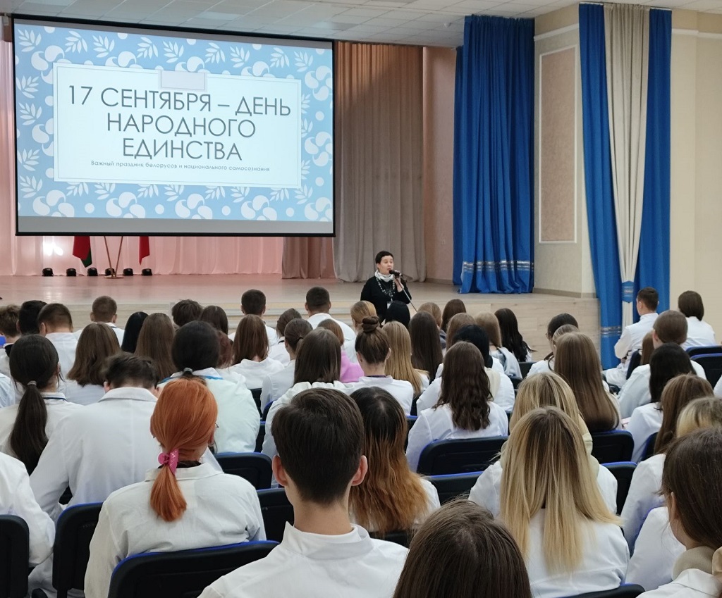 Форум с участием администрации колледжа и председателя профкома учащихся объединил 315 учащихся нового набора. В рамках мероприятия ребята узнали историю возникновения праздника и услышали о достижениях суверенной Беларуси.
