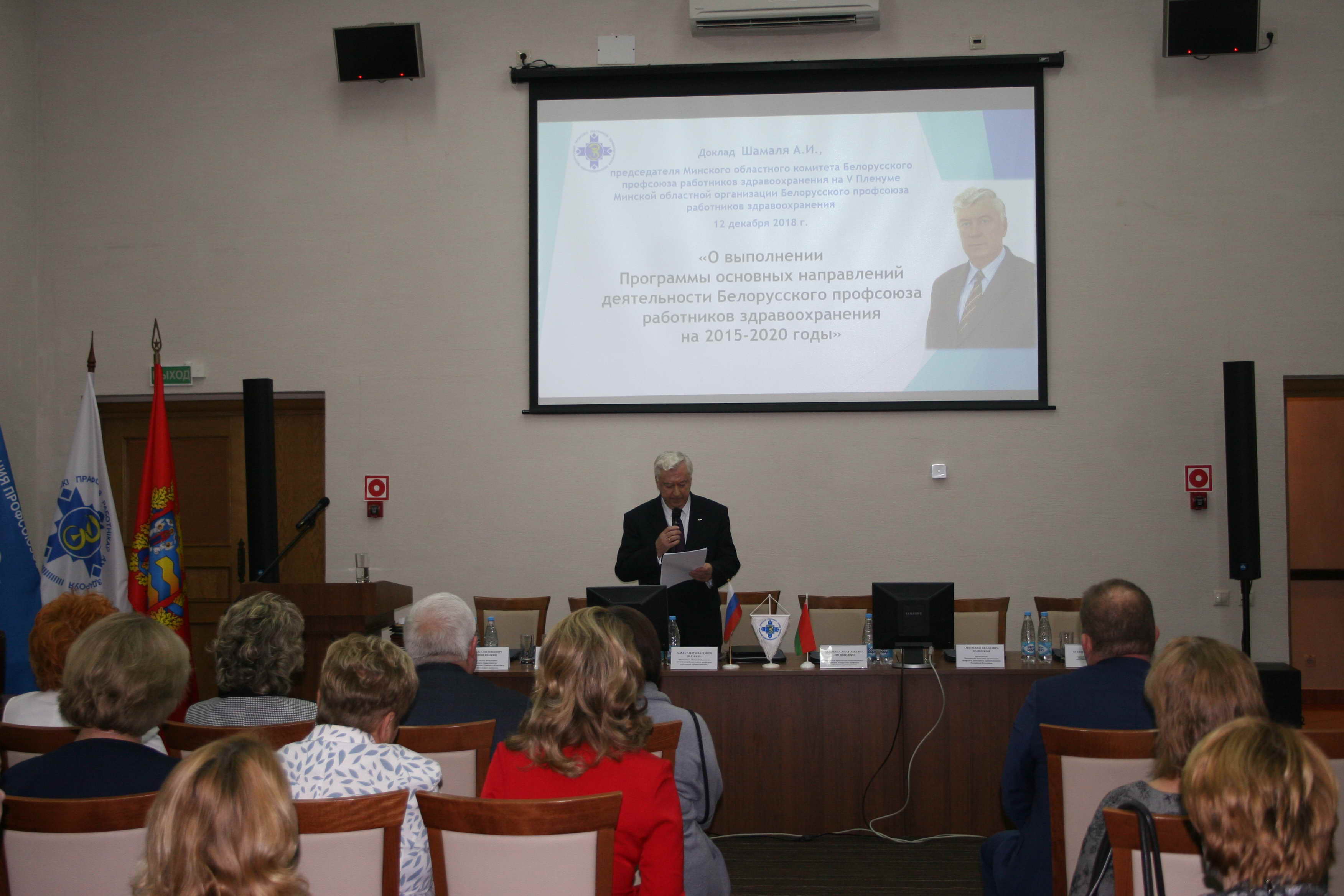 12 декабря 2018 года в г. Минске прошел V Пленум Минского областного комитета Белорусского профсоюза работников здравоохранения. Основной вопрос повестки дня - «О выполнении Программы основных направлений деятельности Белорусского профсоюза работников здравоохранения на 2015-2020 годы».