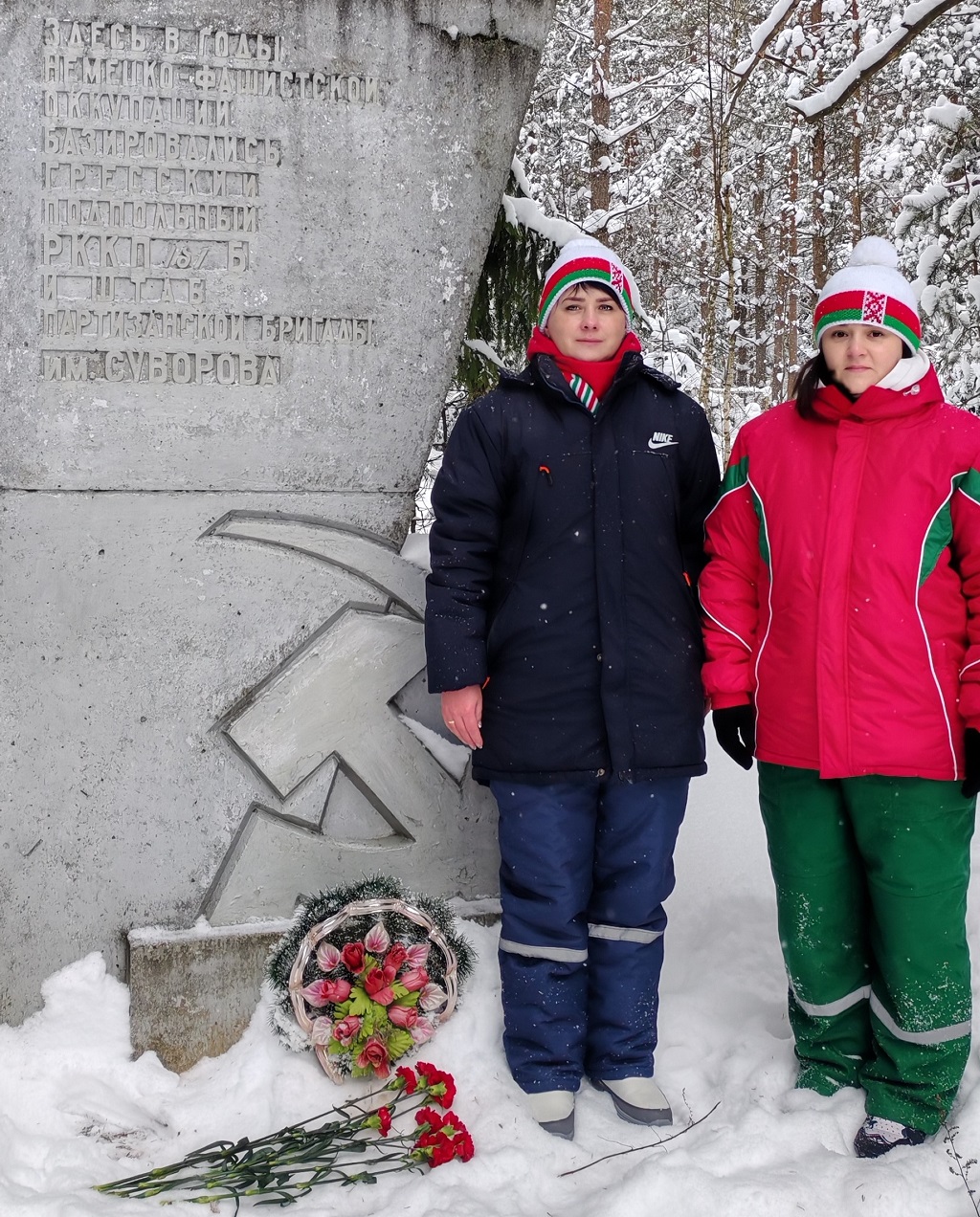Они возложили цветы к памятному знаку 225-ой партизанской бригады имени А. В. Суворова, которая была создана в декабре 1942 года и активно действовала в Слуцком, Гресском и прилегающих районах Минской области.