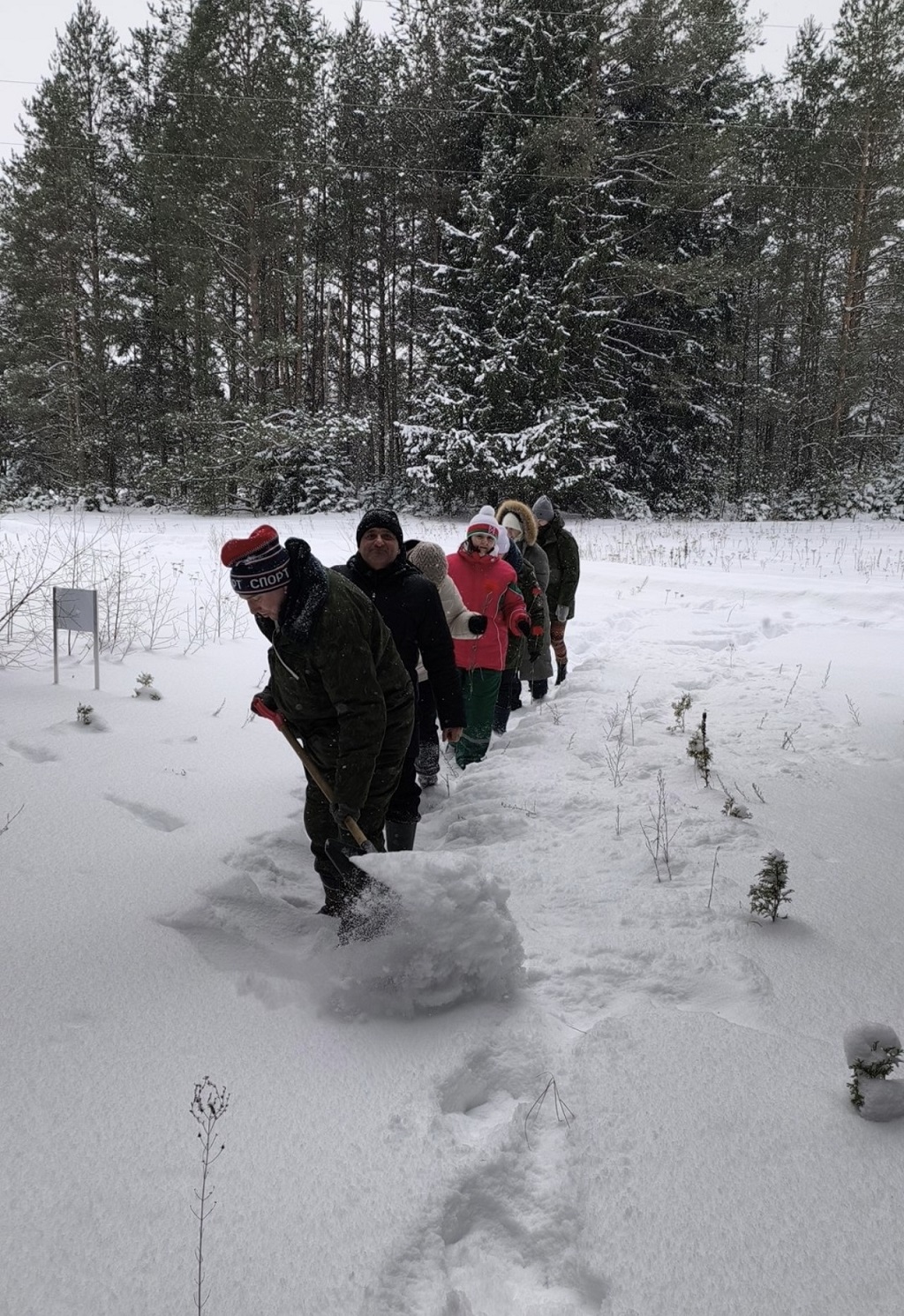 Памятный знак установлен в лесном массиве вблизи д. Поликаровка Слуцкого района. Добраться до памятного знака было крайне сложно, в связи с обильными снежными заметами, поэтому, вооружившись лопатами, уверенно расчищая дорогу, активисты, преодолели сложность снежного капкана.