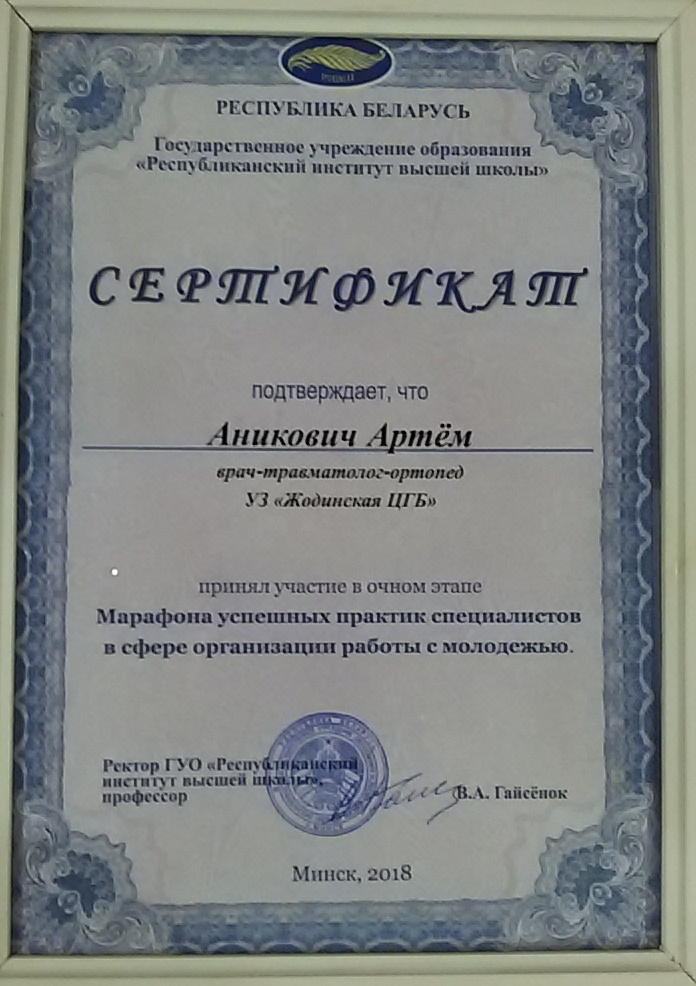 Активное участие в его работе принял врач травматолог молодой специалист 2018 года председатель комиссии профкома УЗ «Жодинская ЦГБ» по работе среди молодёжи Артём Аникович.