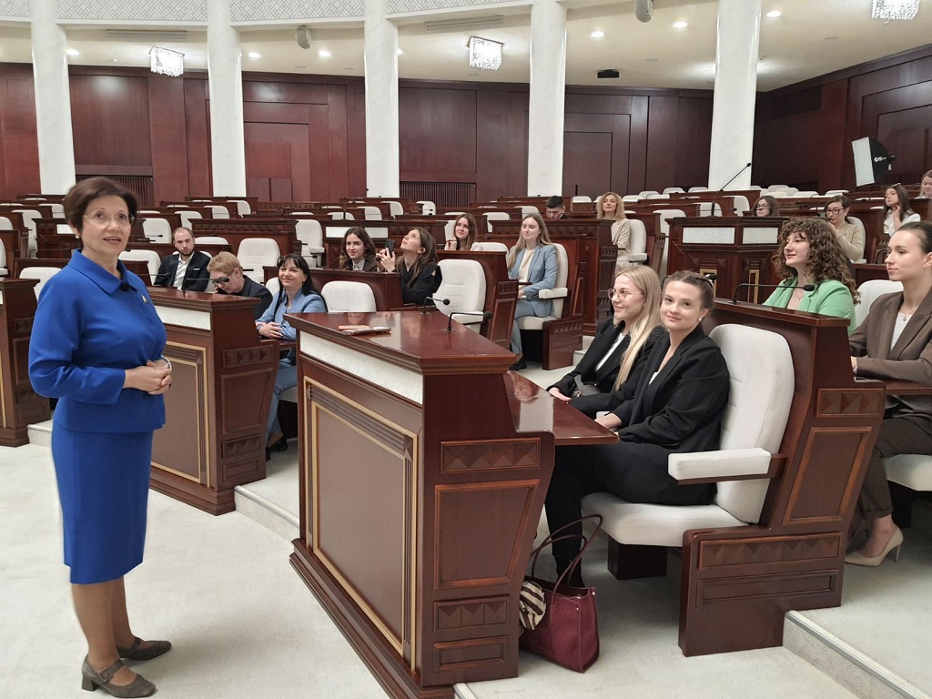 Наталья Дергач в ходе информационной встречи познакомила молодежь с историей белорусского парламентаризма, спецификой работы парламента, механизмах принятия законодательных решений, а также работе депутатского корпуса.