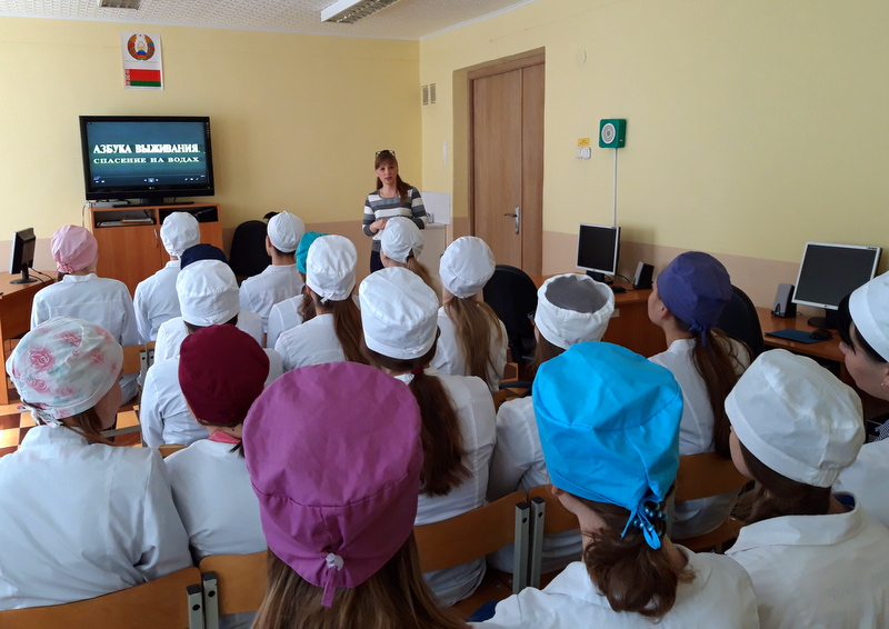 Для обучающихся филиала БНТУ «Борисовский государственный политехнический колледж» и учащихся СШ №8 г. Борисова в целях предупреждения несчастных случаев на воде и оказания первой помощи была организована встреча с членами первичной организации ОСВОД медицинского колледжа. Преподаватель дисциплин «Хирургия с основами травматологии» и «Первичная медицинская помощь» Валерий Рожко вместе с учащимися учебной группы ЛД-171 Кариной Русиновой и Валентиной Ляшкевич провели обучающие занятия по мерам безопасного поведения на водах, продемонстрировали мастер-класс на фантомах по способам спасания и навыкам оказания первой (доврачебной) помощи лицам, терпящим бедствие на воде.