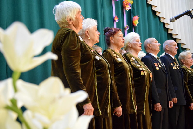 Особое место в репертуаре хора занимают патриотические песни советских и российских композиторов, посвященные военной тематике, родному краю, на которых выросло не одно поколение. В преддверии главного праздника страны – Дня Независимости – убеленные сединой и умудренные жизненным опытом артисты подготовили программу, акцент которой был сделан на военную тематику. Участники творческого коллектива искренне и впечатляюще под чарующие звуки баяна исполняли песни о ратном подвиге советского народа в годы Великой Отечественной войны, любимые мелодии, которые звучали на передовой, в окопах, в партизанских землянках, песни из кинофильмов о войне: «Журавли», «Ехал я из Берлина», «Хотят ли русские войны», «Воспоминание о полковом оркестре» и др. Зал тепло и душевно принимал участников хора и вместе с ними напевал знакомые мотивы. А любимую всеми «Смуглянку» пели вместе и артисты, и зрители.
