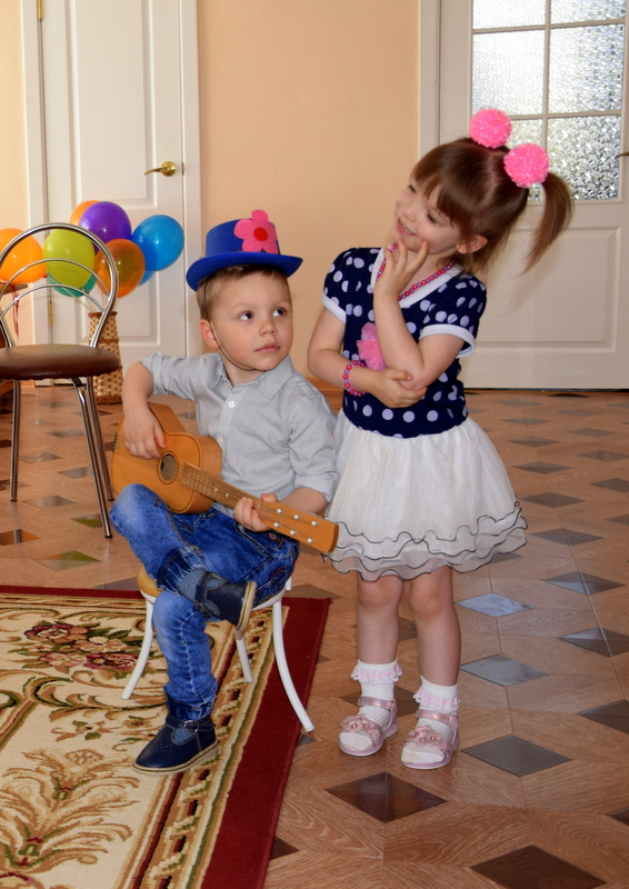Праздничное настроение встречало гостей и детей с самого порога: украшенный яркими воздушными шарами зал создавал атмосферу лета, солнца, праздника. Главные сказочные персонажи праздника Карамелька и Ириска окунули малышей в мир воздушных шаров.