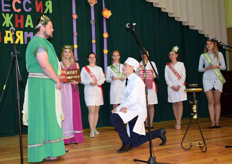 На эти и многие другие вопросы ребята получили ответы на празднике Посвящения в учащиеся «Моя профессия нужна людям», подготовленного старшекурсниками. Науки и дисциплины, открытые Асклепием, которые предстоит изучить будущим медицинским работникам, поведали о себе: «Анатомия» и «Фармакология», «Терапия» и «Хирургия», «Акушерство» и «Гигиена», «Сестринское дело и Манипуляционная техника». Напомнили о себе и Сессия со Стипендией. В свои уютные стены пригласила «Мадам Общежитие».