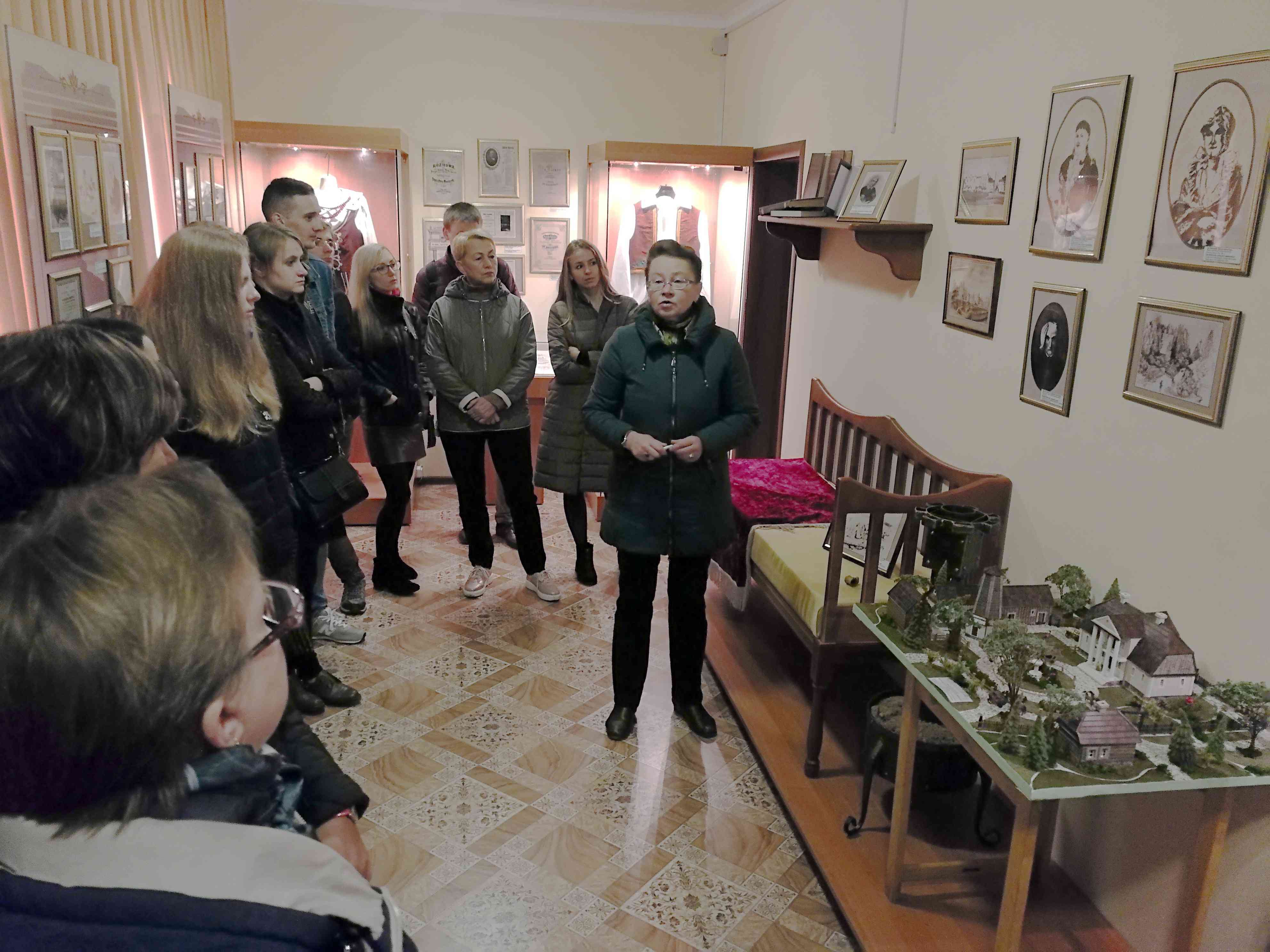 В этот раз нашу экскурсию мы начали с местечка Убель – родины композитора Станислава Монюшко. Это символично, потому что нынешний год – юбилейный со дня его рождения. Мы прошли к памятнику композитору, услышали рассказ нашего экскурсовода, научного сотрудника районного краеведческого музея Ирины Середы о детских годах его жизни. Далее знакомство с жизнью и творчеством композитора мы продолжили в Смиловичах. Здесь сейчас работает музыкальная гостиная Станислава Монюшко, в которой находятся все экспонаты бывшего музея в Убеле. Здесь же можно послушать музыку, написанную композитором в исполнении учеников и педагогов Смиловичской детской школы искусств.