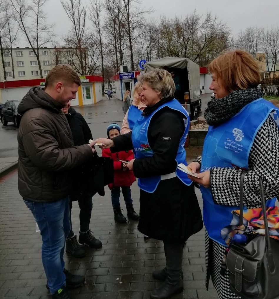 Промозглая осенняя погода не помешала профсоюзному активу Жодинского городского объединения профсоюзов принять участие в акции по мотивированию населения к участию в выборах: "Избиратель, все в твоих руках". В пикете, развернутом на оживленном проспекте Мира города Жодино, председатели профсоюзных организаций города, в том числе - Жодинской центральной городской больницы, раздавали флаеры и приглашали горожан активно проявить свою гражданскую позицию и прийти на выборы депутатов палаты представителей Национального собрания Республики Беларусь 17 ноября.