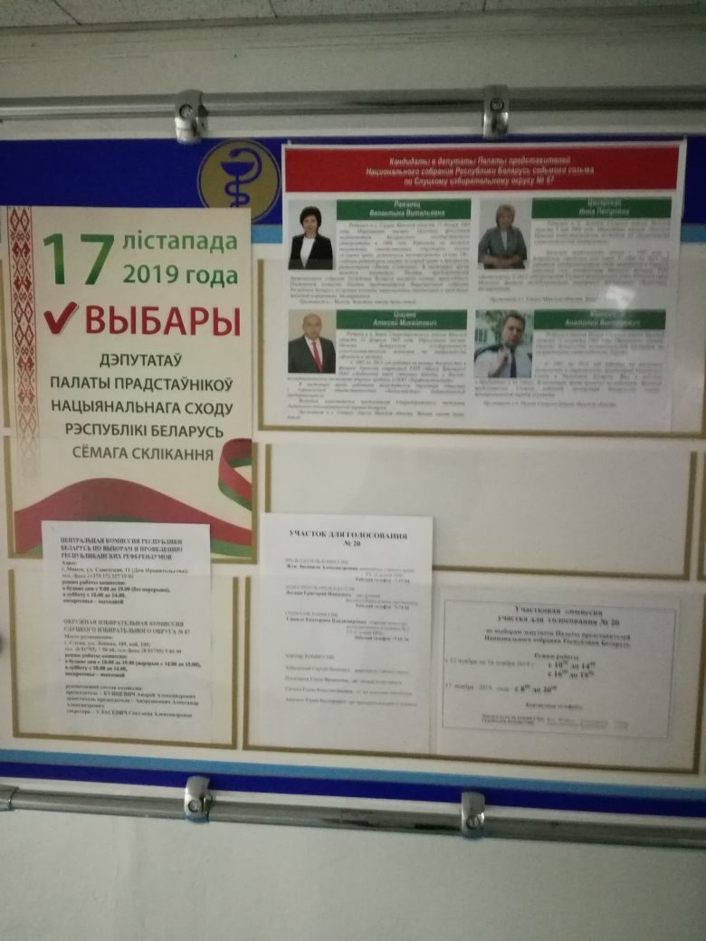Профсоюз первичной профсоюзной организации УЗ «Слуцкая ЦРБ» принял активное участие во всех этапах избирательной кампании. Во время избирательной кампании никто не остался в стороне, ведь мы выбирали тех, кто будет принимать законы, которые нужны людям. На участках были созданы все необходимые условия для свободного волеизъявления граждан. На базе больницы работало 3 открытых и 1 закрытый участка, где непосредственно принимали участие члены профсоюза. Председателем участка №19 работал Вячеслав Аскабович. На участке для голосования царила доброжелательная атмосфера. Во время выборов для граждан проходила профилактическая акция «Измерь свое давление – скажи инфаркту и инсульту «Нет!», работала выездная торговля.  Организована концертная программа «За Беларусь». Происшествий и негативных высказываний от избирателей в адрес комиссии не было. В результате выборов от Слуцкого избирательного округа №67 в парламент прошла действующий депутат Валентина Ражанец.