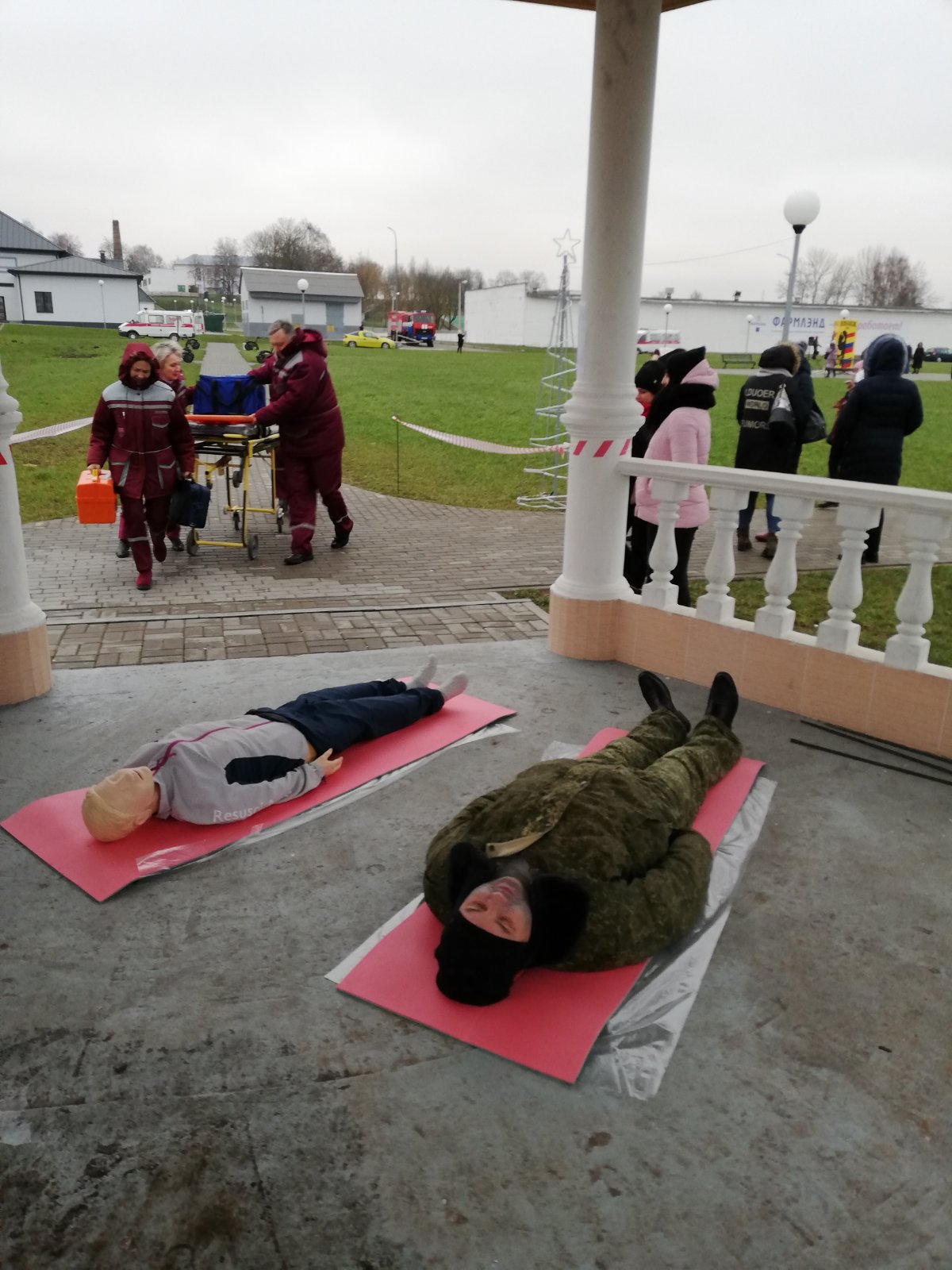 Игры - соревнования проходили в три этапа. Первый этап - утопление. При помощи сотрудников МЧС был спасён из пруда мужчина. Помощь оказывалась в максимально приближенных условиях. Второй этап - ДТП. У мужчины - открытая ЧМТ и открытый перелом голени. Третий этап - синдром длительного сдавления. Мужчину привалило бетонной конструкцией. При помощи сотрудников МЧС мужчина был освобождён и передан бригаде СМП.
