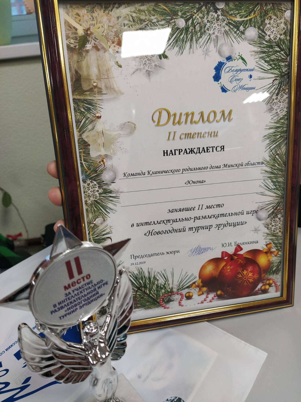 19.12.2019 на базе ГК «Республиканский клинический госпиталь инвалидов ВОВ им. П.М. Машерова» профсоюзный актив УЗ «Клинический родильный дом Минской области» по приглашению председателя ОО «Белорусский союз женщин» Белянкиной Юлии Ивановны впервые приняла участие в новогодней интеллектуально-развлекательной игре «Новогодний турнир эрудиции».