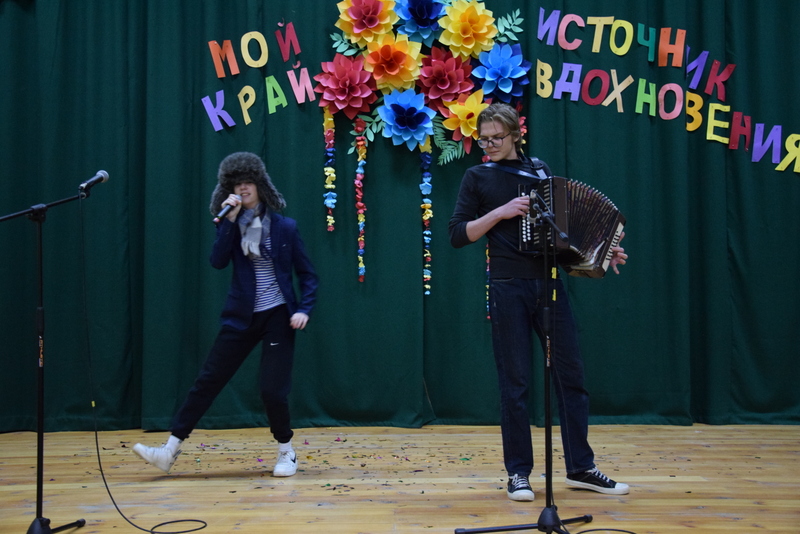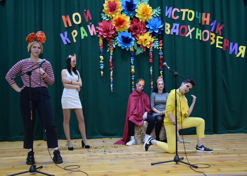 На сцене актового зала учащиеся из 9-ти учебных групп 1 курса представили мини-концертные программы с запоминающимися вокальными номерами, хореографическими композициями, театральными постановками, КВН-ским стемом, инструментальными произведениями, оригинальным конферансом.        Тема конкурса была близка каждому: «Мой край – источник вдохновения». Поэтому в программах выступлений много теплых слов было адресовано своей родной стране: ребята рассказывали о городах и селах, в которых родились и выросли, прославляли родную Беларусь в стихах и песнях.