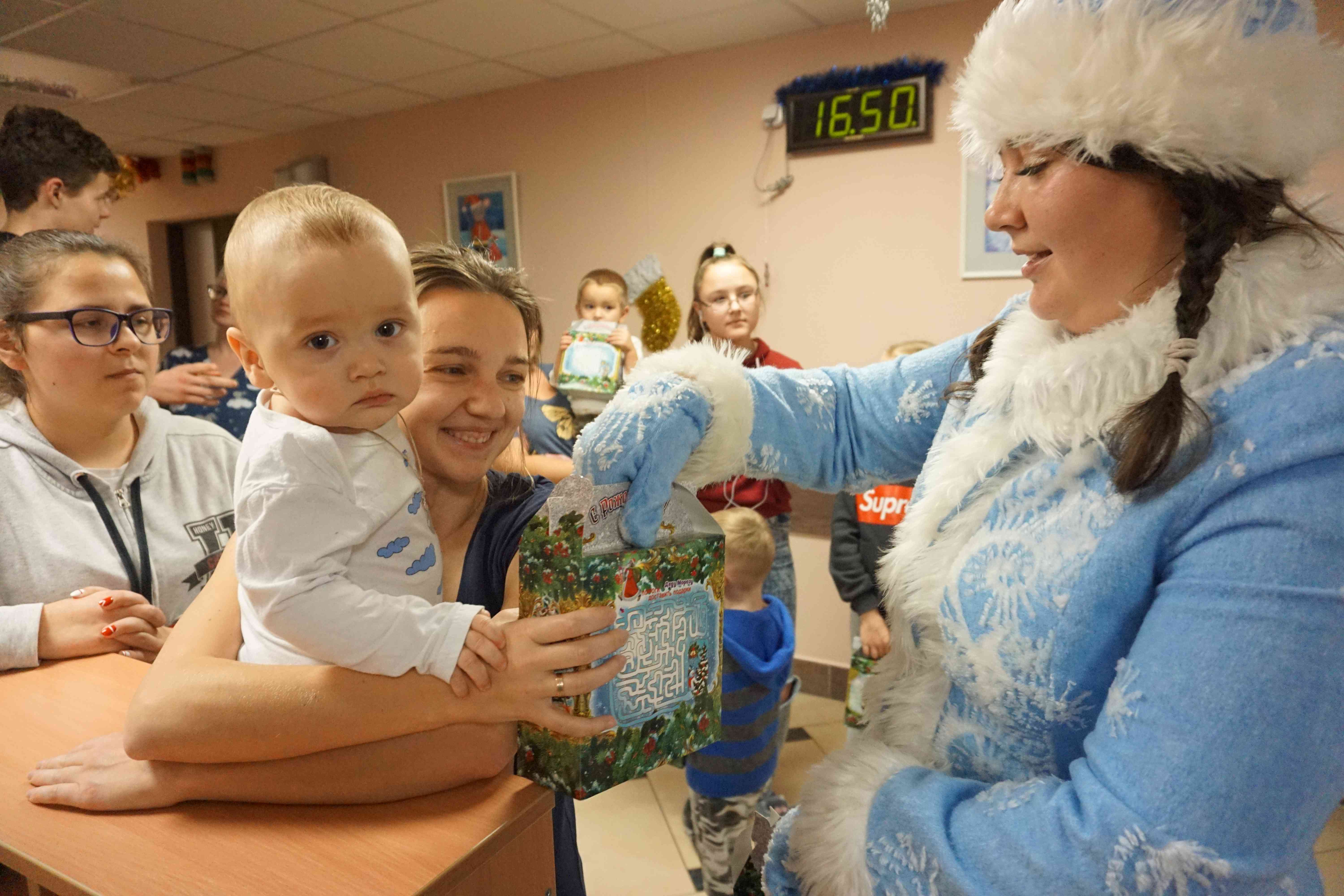 В момент появления Деда Мороза и Снегурочки маленькие пациенты забыли о своих болезнях. Новогодние песни создали настоящий Новогодний праздник. Каждый малыш получил сладкий Новогодний подарок.