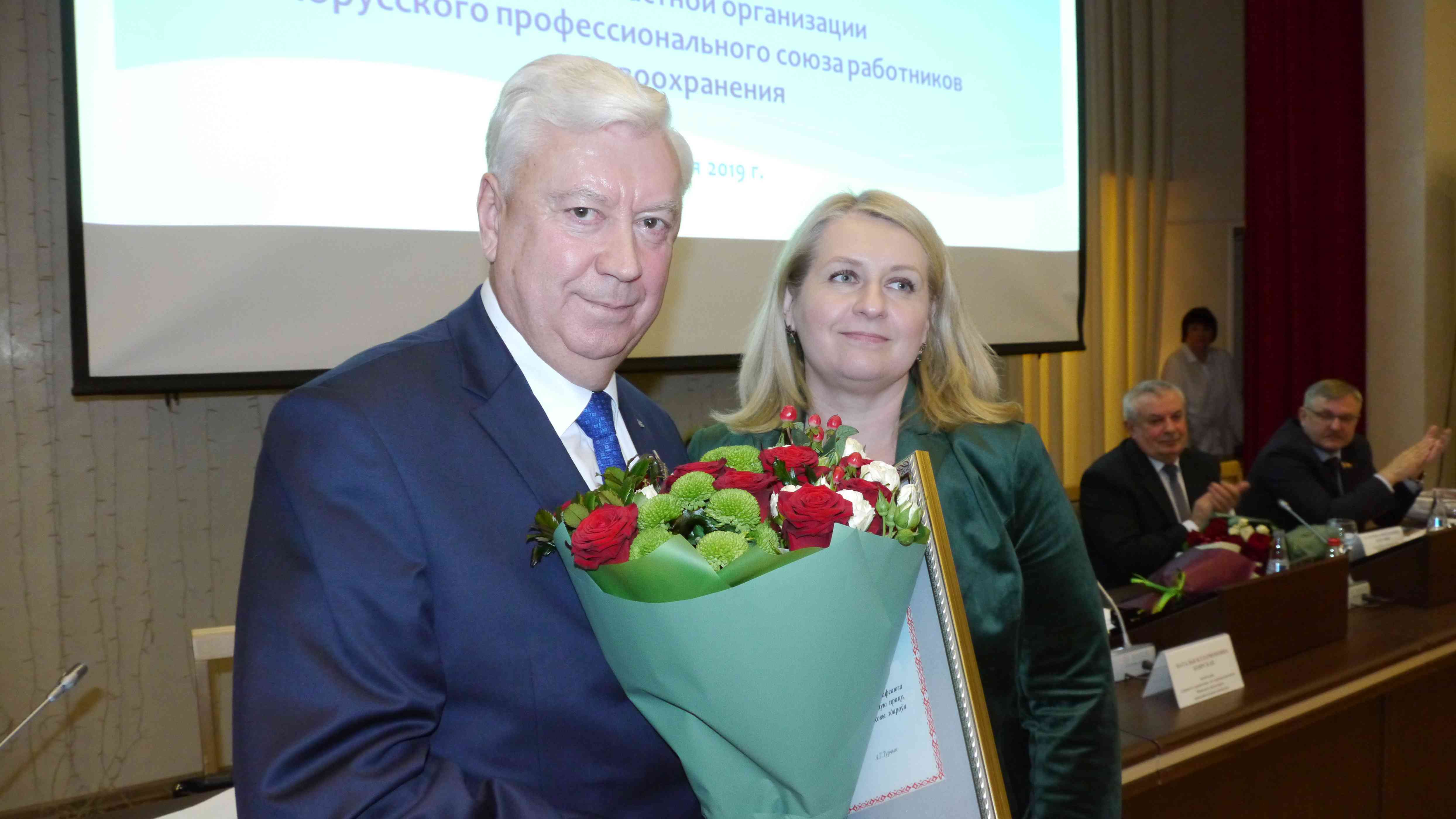 С отчетным докладом «О работе Минской областной организации Белорусского профессионального союза работников здравоохранения за 2015-2019 годы» выступил председатель Минского областного комитета Белорусского профсоюза работников здравоохранения Александр Иванович Шамаль. В своем докладе Александр Шамаль изложил все направления деятельности областной организации за отчетный период отметив положительные стороны, не скрывая недостатков. В заключение выступления председатель комитета пожелал всему профактиву вдохновения, процветания, успехов и в соответствии с Концепцией кадровой политики Федерации профсоюзов Беларуси сложил свои полномочия, и не стал выдвигаться на должность. В знак признательности и уважения председатель Московской областной организации профсоюза работников здравоохранения Российской Федерации Анатолий Домников вручил Александру Шамалю знак Московской областной организации профсоюза работников здравоохранения Российской Федерации «Профсоюзная гордость» за многолетнее и плодотворное сотрудничество между отраслевыми профсоюзами Московской и Минской областей.