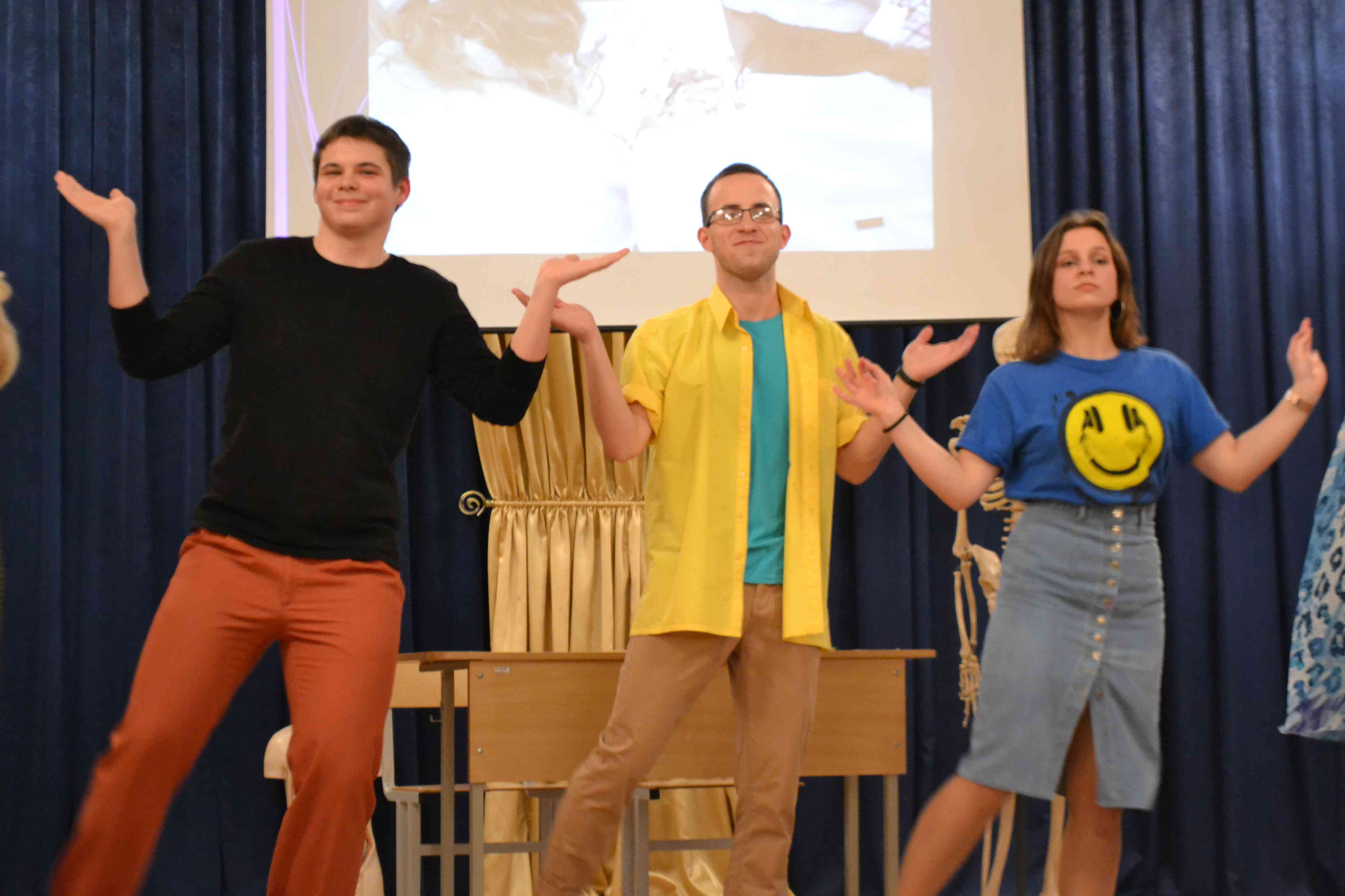 Сценарий, костюмы, актерское мастерство – это как всегда заслуга учащихся. Зрелищности и стиля добавило звуковое и видео-сопровождение.
