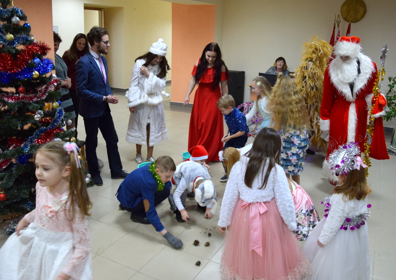 Главными героями предновогоднего мероприятия стали сказочные герои Дед Мороз (Новик Алексей, ЛД-184), Снегурочка (Утькова Диана, ЛД-184), Леший (Ковалев Алексей, ЛД-191), Кикимора (Козырева Татьяна, СД-192) и Баба Яга (Мозгова Дарья, ЛД-184). Они развлекали ребят, их родителей шутками, веселыми конкурсами, играми. Мальчишки и девчонки в ярких карнавальных костюмах читали стихи, пели песни, водили хороводы, танцевали. Дед Мороз и Снегурочка никого не оставили без внимания.