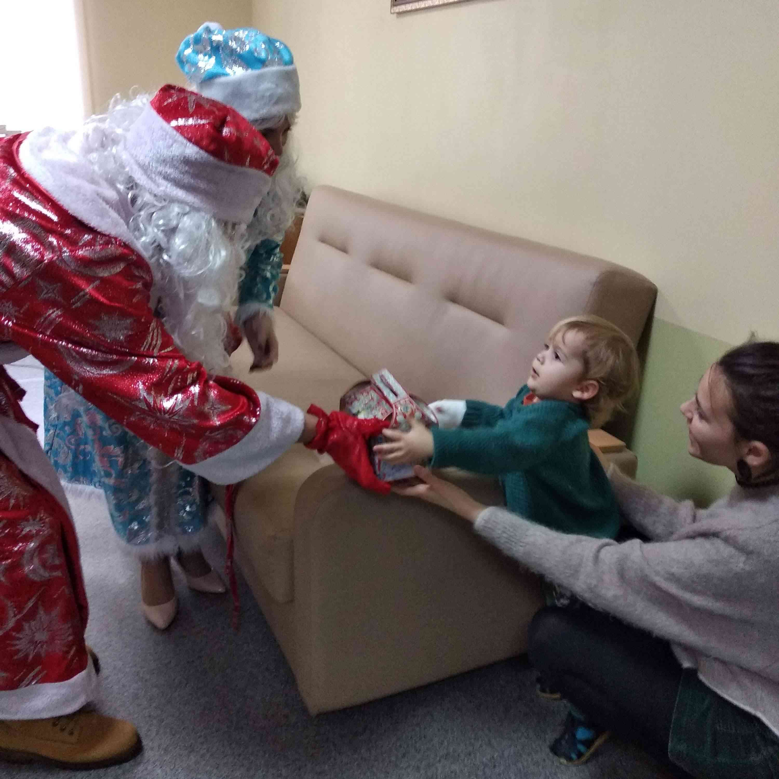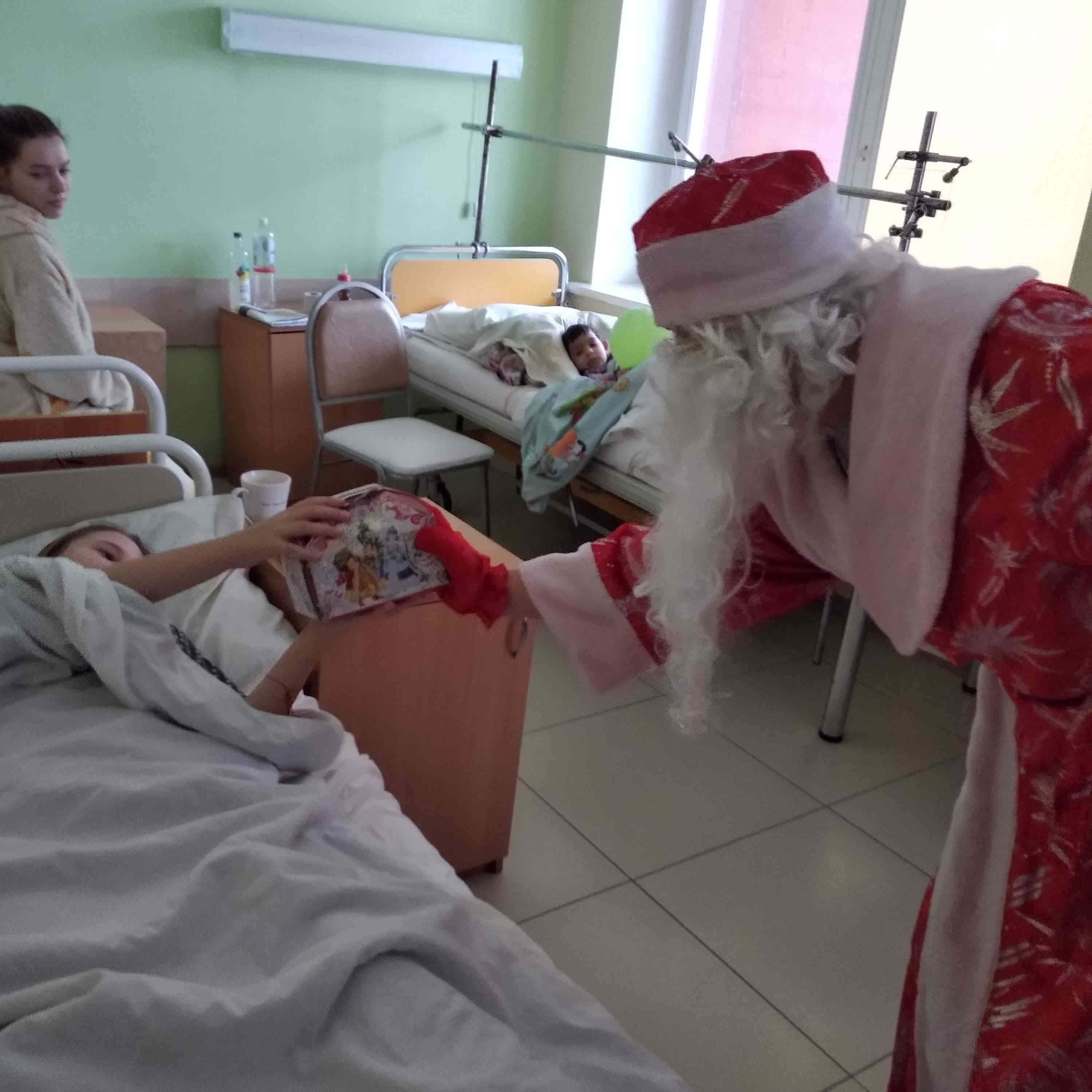 Для детей, находящихся на стационарном лечении, организовано вручение новогодних подарков из рук Деда Мороза и Снегурочки.