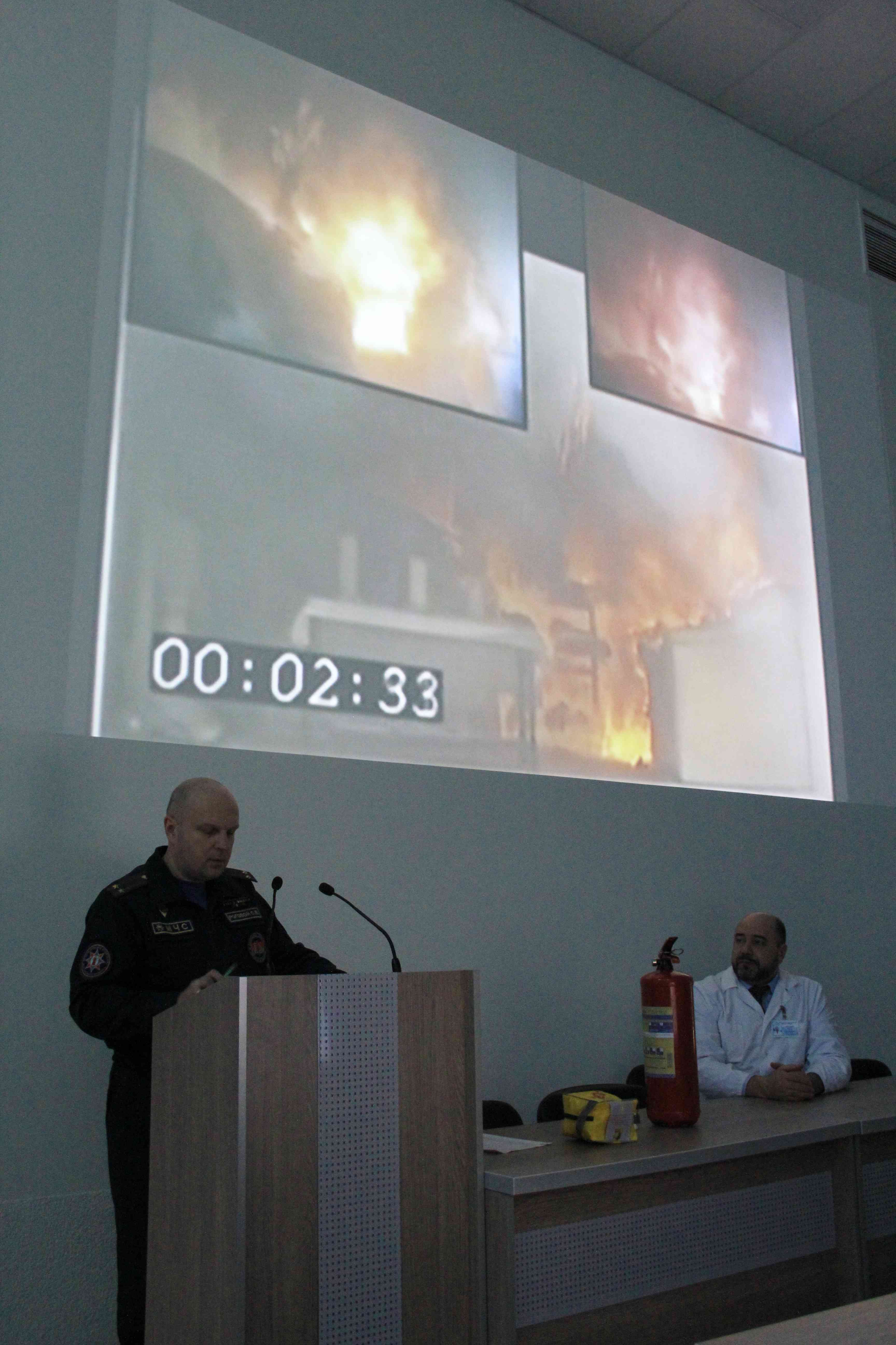Во время встречи показаны были видеоролики, пдробно ознакомили с принципами работы автоматического пожарного извещателя, устройство и приведение в действие огнетушителя а также назначение и применение самоспасателя (с целью защиты органов дыхания при пожаре), познакомили с приложением для телефона от МЧС «Помощь рядом».