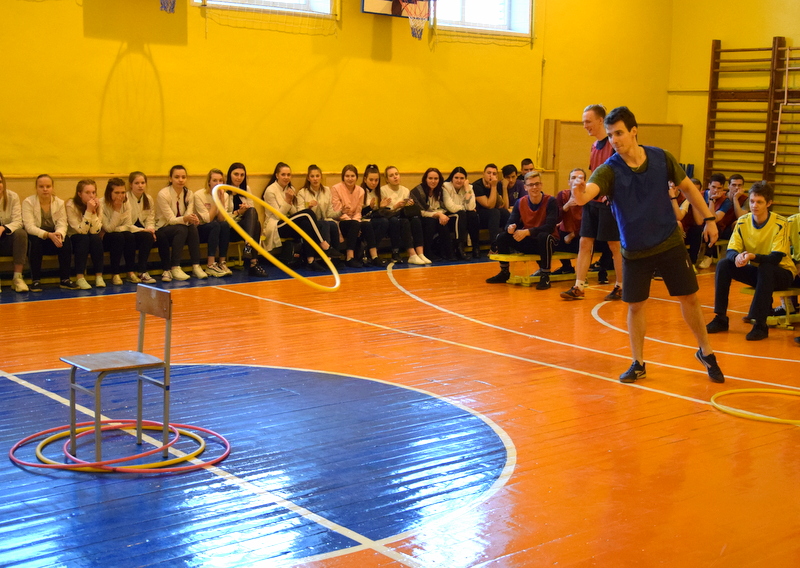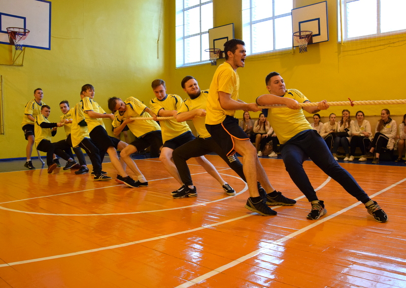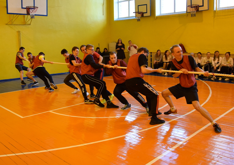 В спортивном празднике померились физическими силами юноши 1, 2, 3 курсов. Каждый из трех курсов был представлен командой из 10 человек, а также группой поддержки. Учащимся было предложено состязаться в десяти спортивных эстафетах: «Бегуны», «Веселые баскетболисты», «Рыбалка», «Интеллектуальный конкурс», «Эстафета с медболом», «Хоккей», «Конкурс капитанов», «Грибники», «Снайперы», «Перетягивание каната», каждая из которых была по-своему интересна и увлекательна.