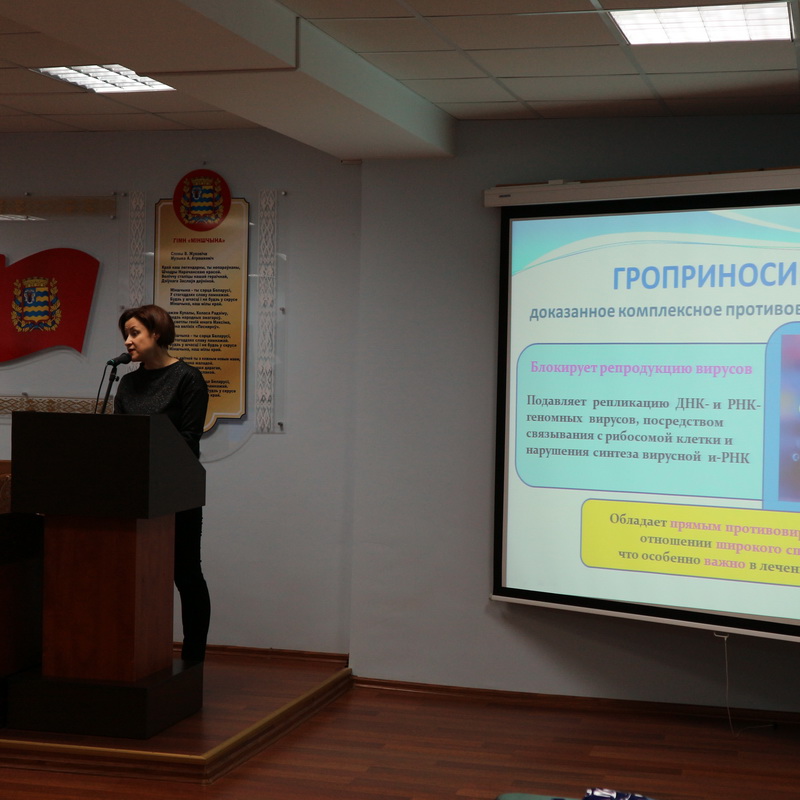 В рамках мероприятия Томило Л.В., медицинский представитель ОАО «Гедеон Рихтер» выступила с докладом на тему «Гроприносин. Комплексный подход в терапии вирусных инфекций», Киселева Т.А., менеджер отдела маркетинга ООО «АКРИХИН БиУай» - на тему «Дефицит витамина Д у детей и взрослых в Республике Беларусь». С сообщением на тему «Профилактика и лечение гриппа и ОРВИ лекарственными средствами СООО «Лекфарм». Новые исследования молекулы умифеновир. Новинки 2019-2020гг.» выступил Ивков А.Н., менеджер отдела маркетинга СООО «Лекфарм».