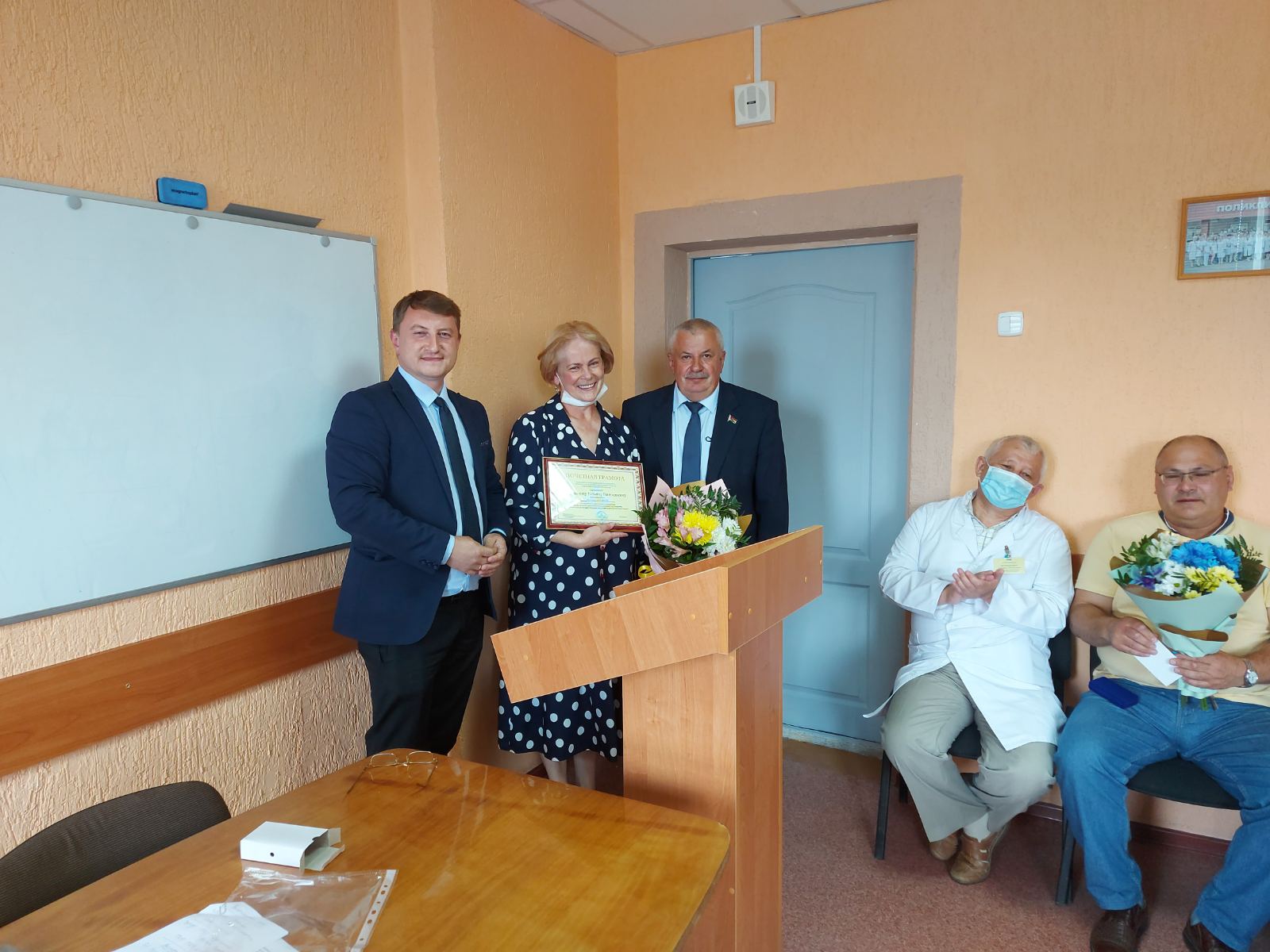 На встрече присутствовало руководство больницы, председатель первичной профсоюзной организации, профсоюзный актив. Во время встречи, были рассмотрены и обсуждены вопросы интересующие медицинских работников, но актуальной темой для обсуждения стала тема работы при Белорусском профсоюзе работников здравоохранения Фонда поддержки работников организаций здравоохранения, участвующих в оказании медицинской помощи пациентам с заболеваниями COVID-19.