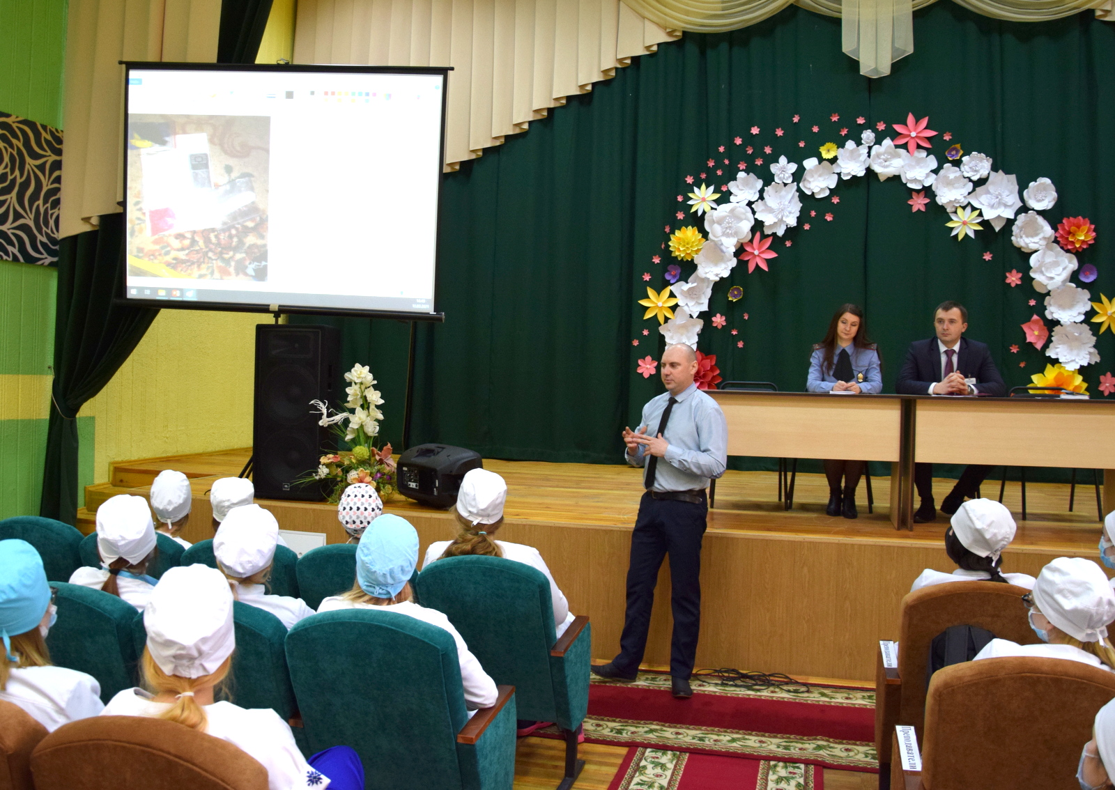 С целью профилактики употребления и распространения наркотических веществ в молодежной среде перед учащимися выступил Константин Глушень, зам.начальника отдела по наркоконтролю. Константин Владимирович рассказал о том, с чем приходится сталкиваться сотрудникам наркоконтроля, рассказ сопровождался видеопрезентацией. Он также привел множество примеров о трагических судьбах наркоманов и их близких людей. Увиденное на экране и услышанное поразили учащихся видом разрушительного воздействия наркотиков на психику и здоровье молодых людей. Ребятам раскрыли понятия «наркомания», «наркотики», используя примеры из рабочей практики, а также проинформировали о мерах уголовной и административной ответственности за употребление, хранение, распространение и сбыт наркотических веществ.