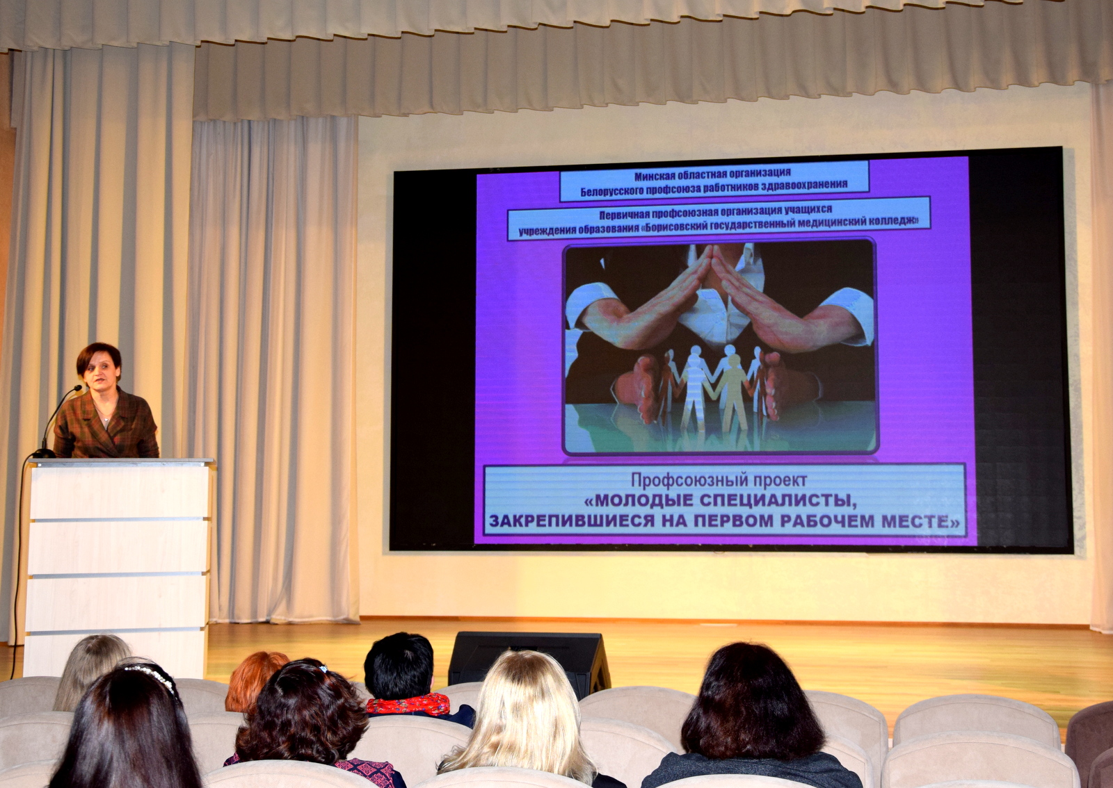 В финал районного этапа конкурса вышло 6 профсоюзных проектов из 4 учреждений образования Борисовского района. Среди них проект «Молодые специалисты, закрепившиеся на первом рабочем месте», который представила первичная профсоюзная организация учащихся учреждения образования «Борисовский государственный медицинский колледж». С презентацией проекта выступила председатель ППО учащихся колледжа Нила Барташевская. Цель проекта: анализ работы отдельных учреждений здравоохранения Минской области и первичных профсоюзных организаций учреждений по закреплению молодых специалистов (фельдшеров, акушеров, помощников врача по амбулаторно-поликлинической помощи, медицинских сестер) за период с 2015 по 2020 год. Ожидаемый эффект от реализации проекта: выработка дополнительных мер, способствующих повышению закрепляемости молодых специалистов (выпускников УО «Борисовский государственный медицинский колледж») на первых рабочих местах.