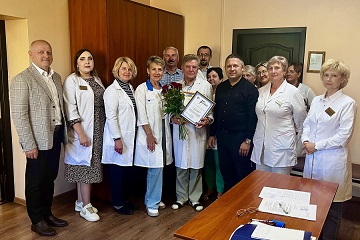 Председатель певички Молодечненской ЦРБ Андрей Средов совместно с администрацией больницы поздравили с 70-летним юбилеем Валерьяна Николаевича Степанеля, врача-хирурга поликлиники №1.