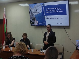 Спикером на встрече с коллективом выступила председатель отраслевого профсоюза Минщины Ольга Катова.