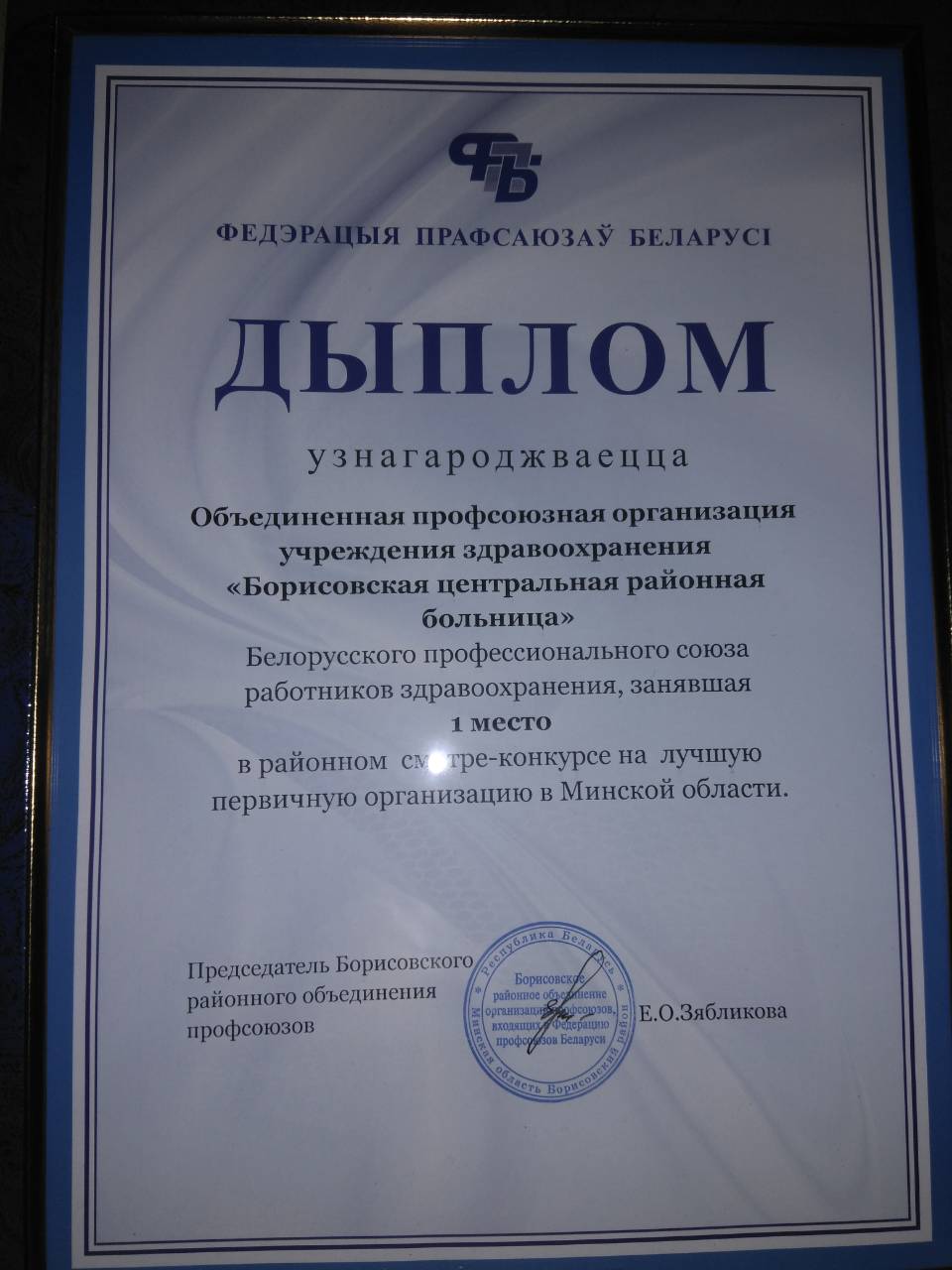 2. Объединенная профсоюзная организация УЗ «Борисовская центральная районная больница» - I место.