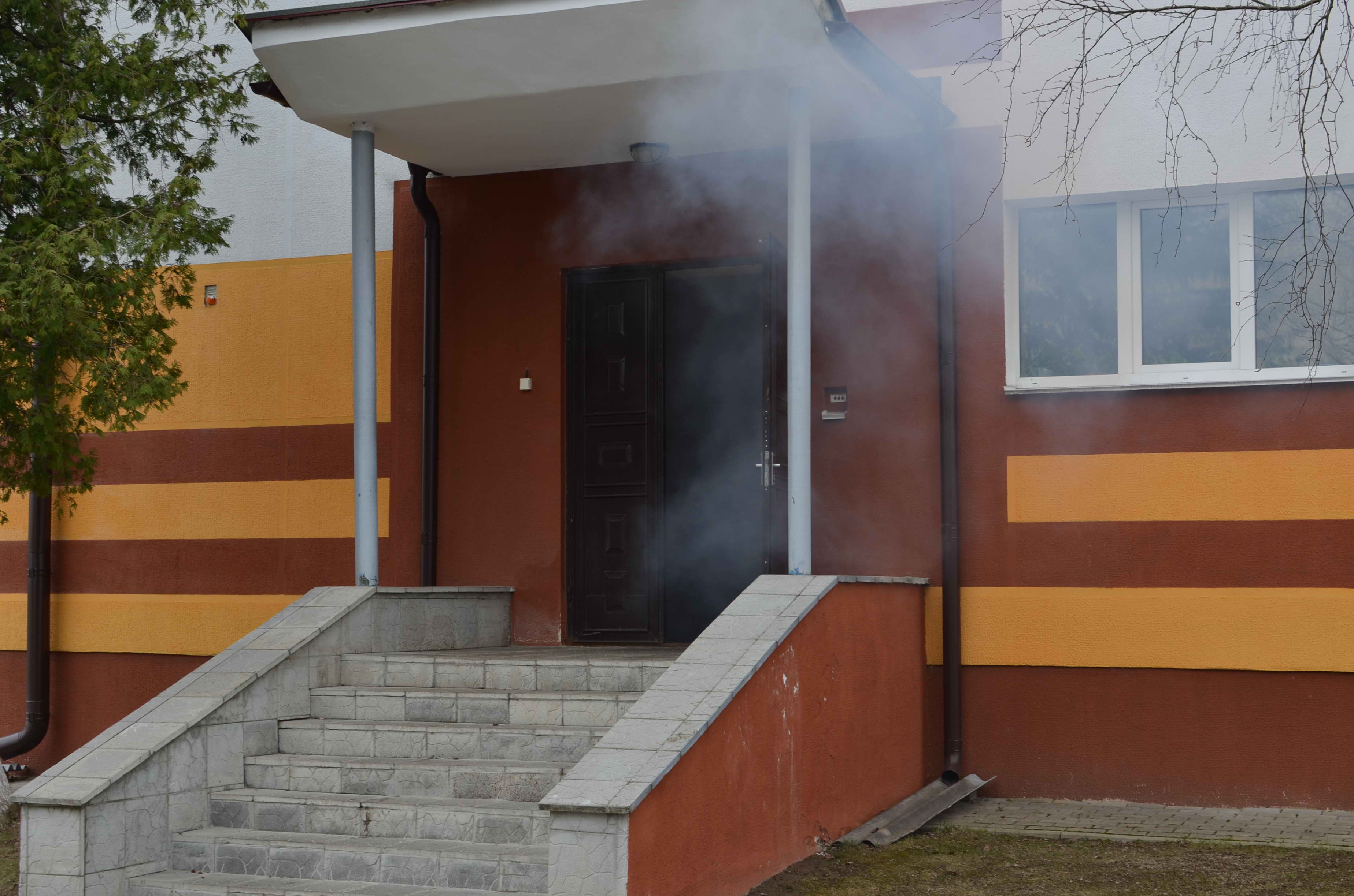 По замыслу учений, в одном из складских помещений произошло короткое замыкание электропроводки с последующим её возгоранием и распространением пламени по горючей загрузке (деревянные поддоны, картонная упаковка). Создалось плотное задымление. Дым быстро распространился по всем этажам здания. В подвале, на втором и четвертом этажах заблокированными оказались 7 человек, 2 из которых пострадали в результате отравления продуктами горения и им требуется срочная медицинская помощь.