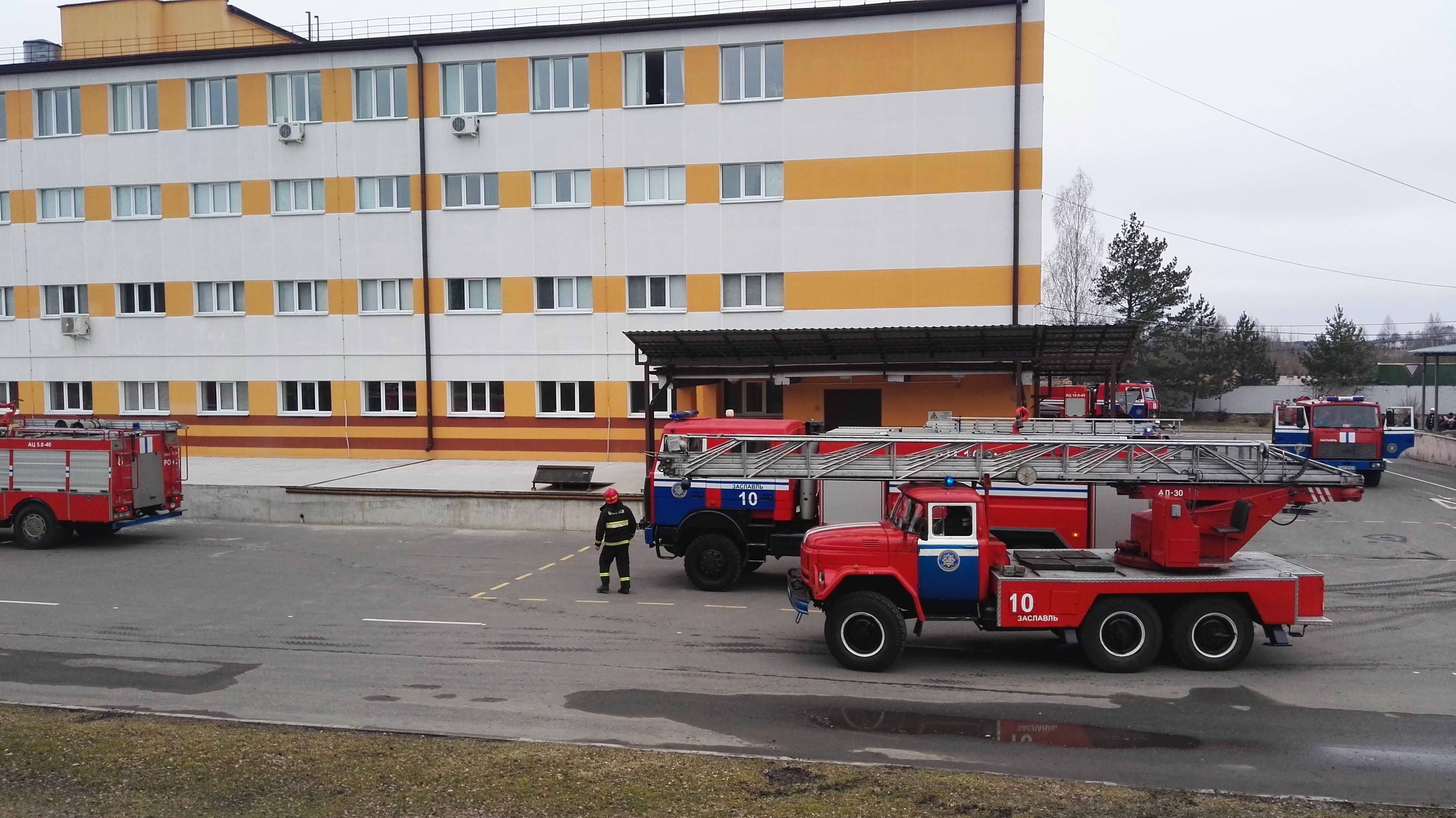 В ходе учений проведена отработка плана эвакуации (эвакуировано 92 работника), взаимодействие с аварийно-спасательными службами Минского района и г. Заславль («101», «102» и «103») по спасению людей и ликвидации пожара, осуществлена проверка работоспособности автоматической пожарной сигнализации.