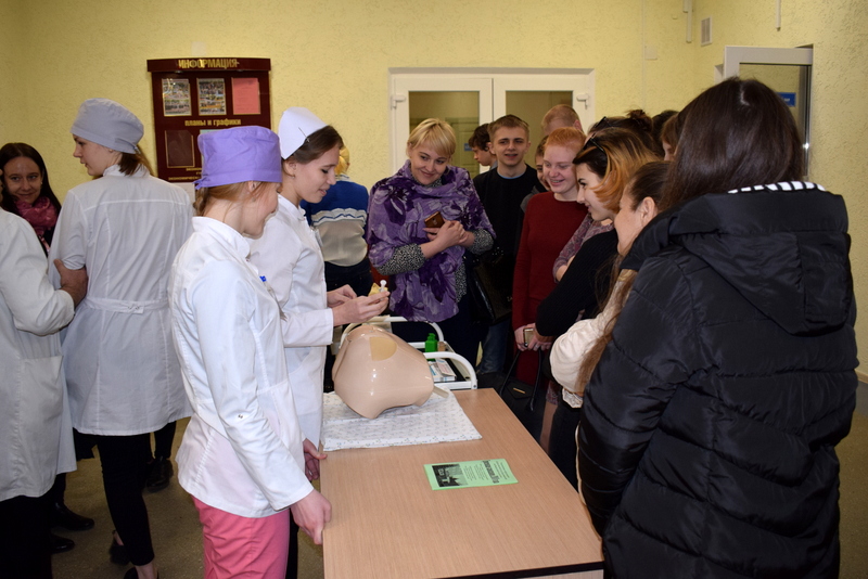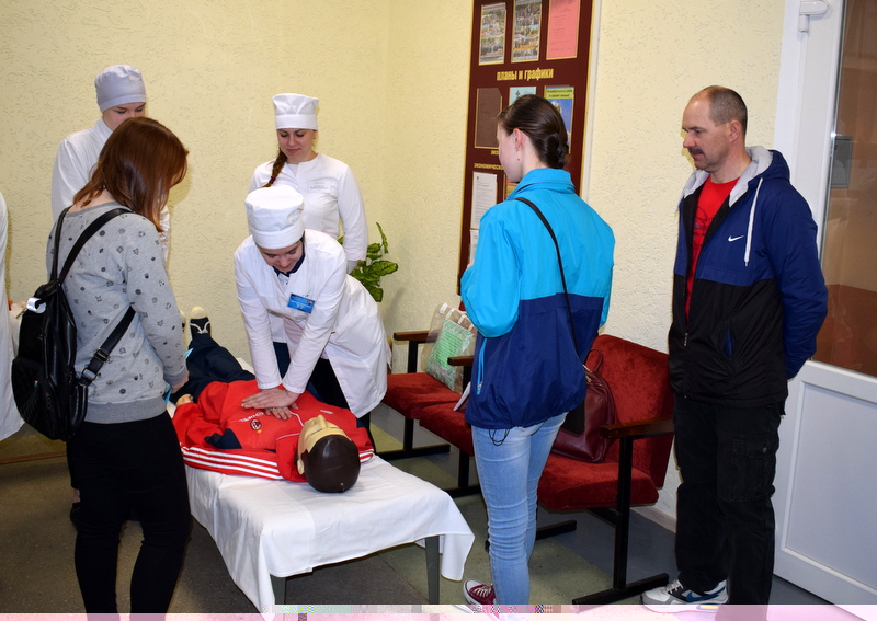 Дню открытых дверей придали практико-ориентированную направленность. Это, прежде всего, презентация специальностей, организация мастер-классов по терапии (выполнение внутримышечных инъекций), хирургии (проведение непрямого массажа сердца и искусственной вентиляции легких), педиатрии (пеленание новорожденных), манипуляционной технике (накладывание бинтовых повязок), посещение учебных аудиторий, общежития колледжа, где абитуриенты смогли ознакомиться с условиями проживания наших учащихся. Специально для учащихся СШ №13 г.Борисова было организовано посещение УЗ «Борисовская ЦРБ» (неврологическое отделение и рентгенологический кабинет), где ребятам была дана возможность ознакомиться с местом, условиями и режимом работы выпускников медицинского колледжа, рабочей нагрузкой и выполняемыми ими обязанностями и др.