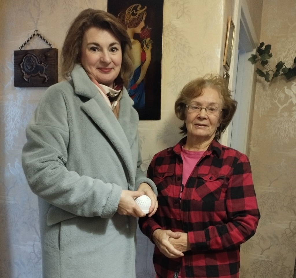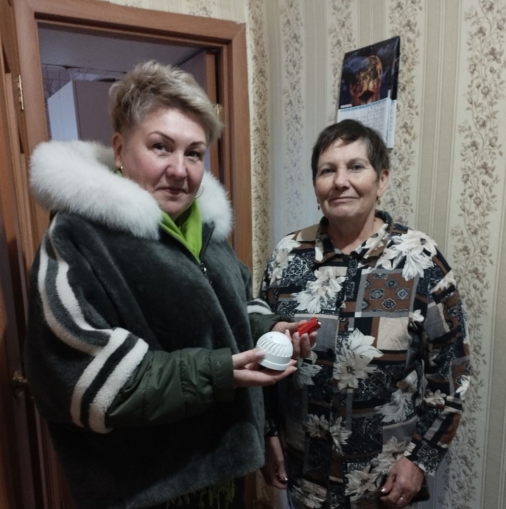Председатель ППО Борисовской ЦРБ совместно с заместителем главного врача по идеологической работе Анжелой Заяц посетили на дому десять неработающих ветеранов труда, отработавших более 40 лет в больнице, которым передали автономные пожарные извещатели.