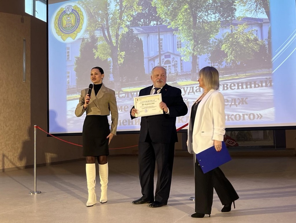 Председатель отраслевого профсоюза Минщины Ольга Катова передала руководству колледжа сертификат на 6500 рублей на модернизацию материально-технической базы.