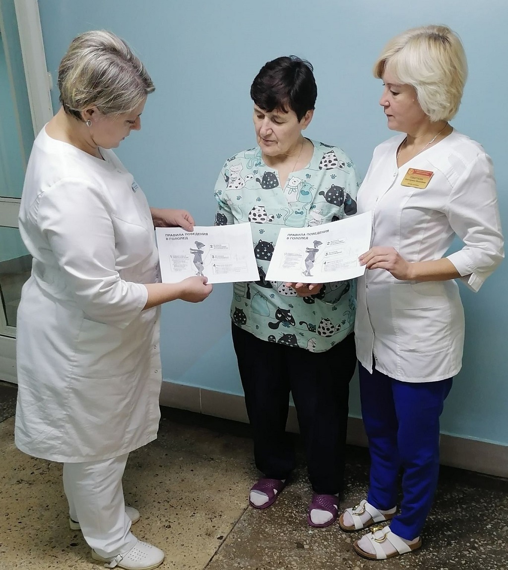 Завершающим этапом мероприятия стала раздача памяток сотрудникам и пациентам больницы о профилактике гололедных травм, в которых содержится информация, как не стать жертвой зимней погоды.