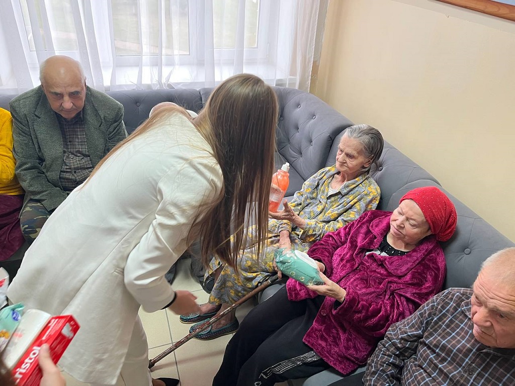 Также для постояльцев был организован праздничный концерт, после которого учащиеся посетили палаты проживающих в отделении, услышали истории из жизни пожилых людей, постарались уделить внимание каждому человеку и продемонстрировали свои медицинские навыки.