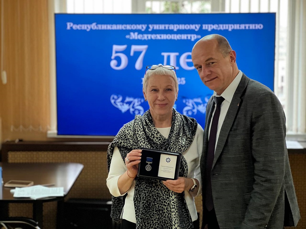 Особо торжественным моментом стала церемония награждения. За многолетний добросовестный труд и значительный вклад в развитие предприятия почетные нагрудные знаки «Ветеран труда государственного предприятия «Медтехноцентр» были вручены 58 сотрудникам. Эти высокие награды – заслуженное признание их преданности делу и профессионального долголетия.